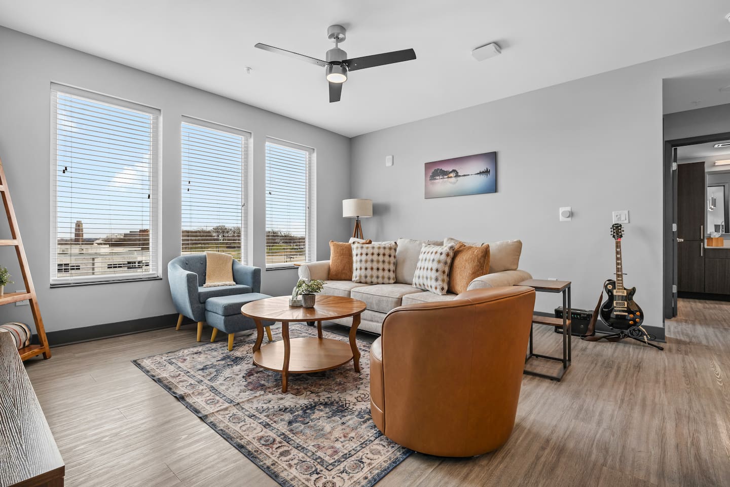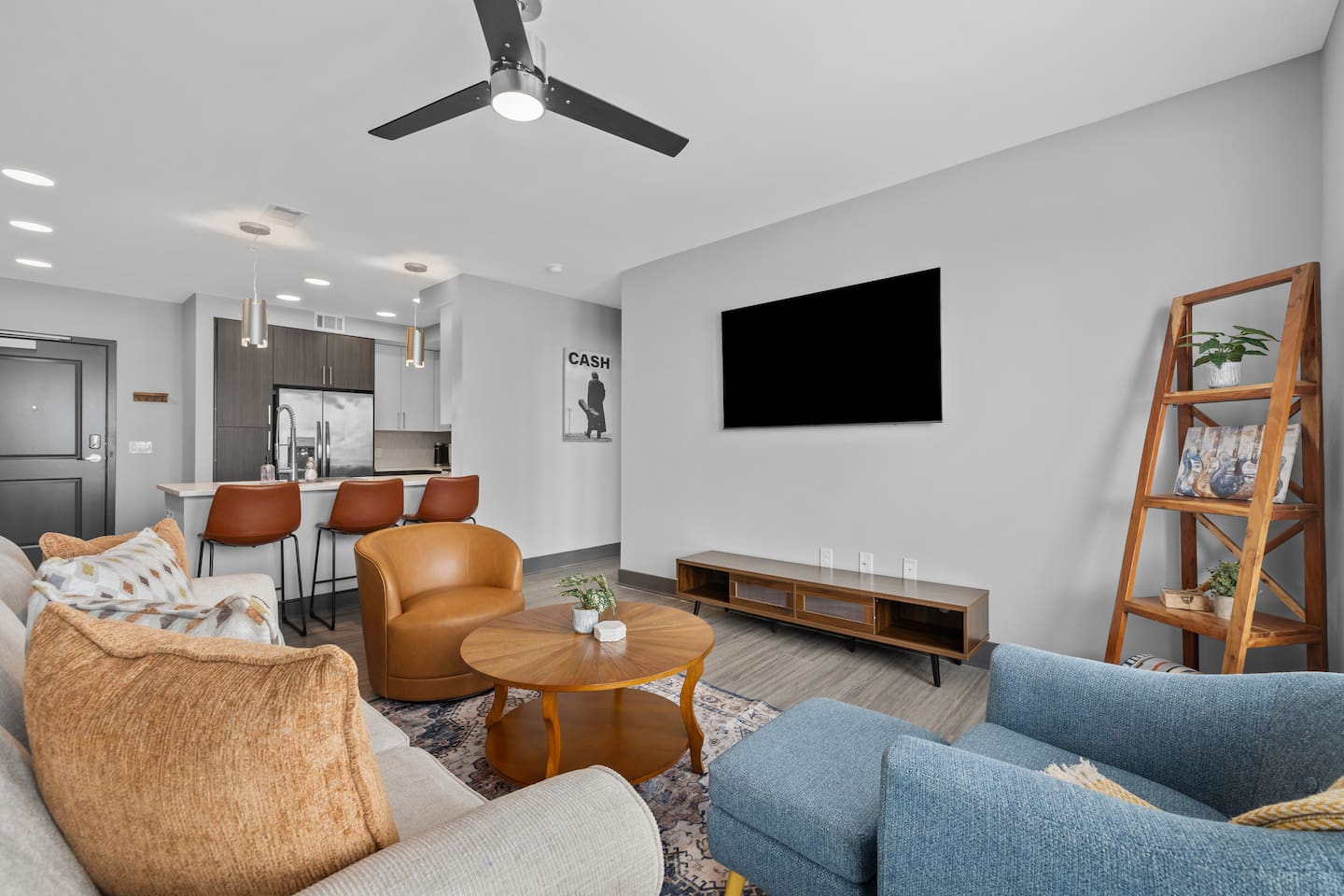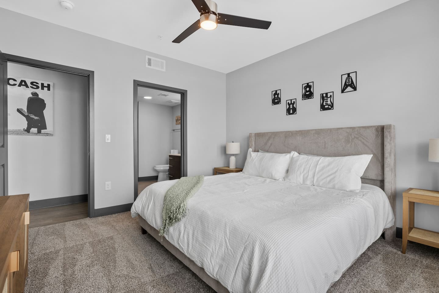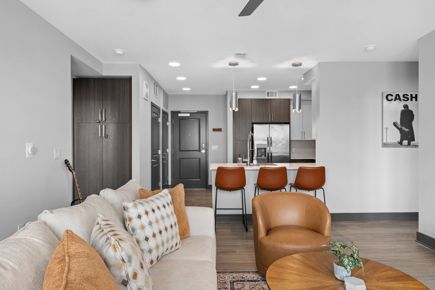 Experience Music City in style from this modern 2BR/2BA retreat. Designed with Nashville-inspired dรฉcor, this space features a fully equipped kitchen, spacious living area, and plush bedrooms with en-suite baths. Enjoy top amenities like a resort-style pool, 24/7 fitness center, and music lounge. Just minutes from Broadway, Music Row, and top attractions. Book now for an unforgettable stay! ๐๐ค