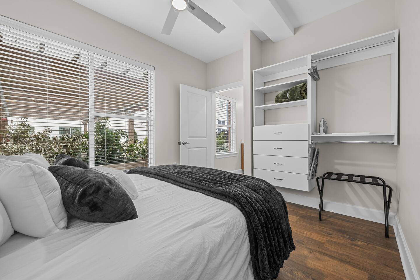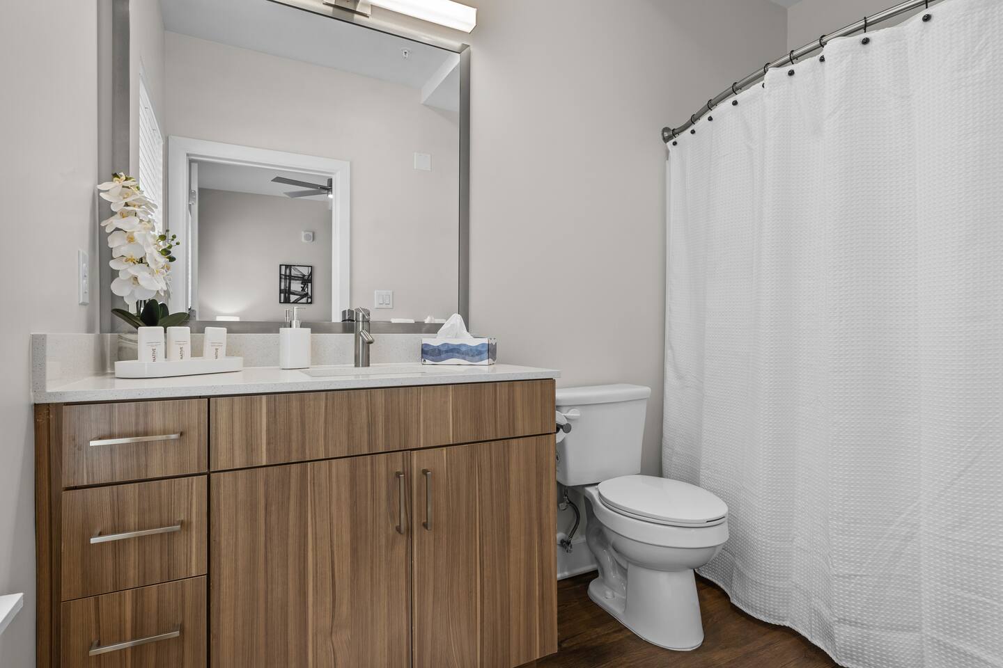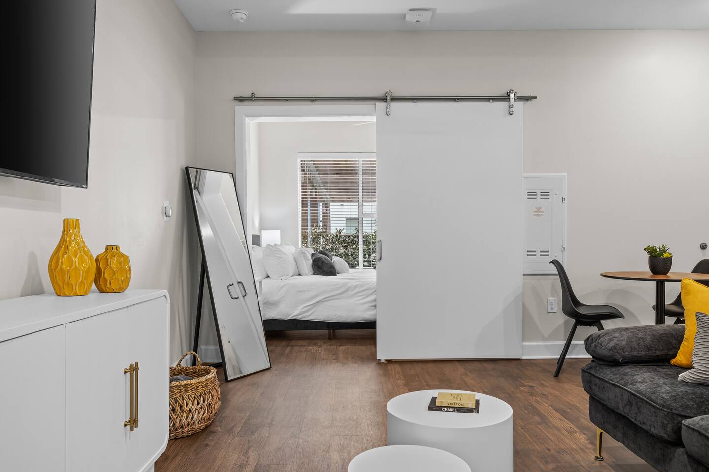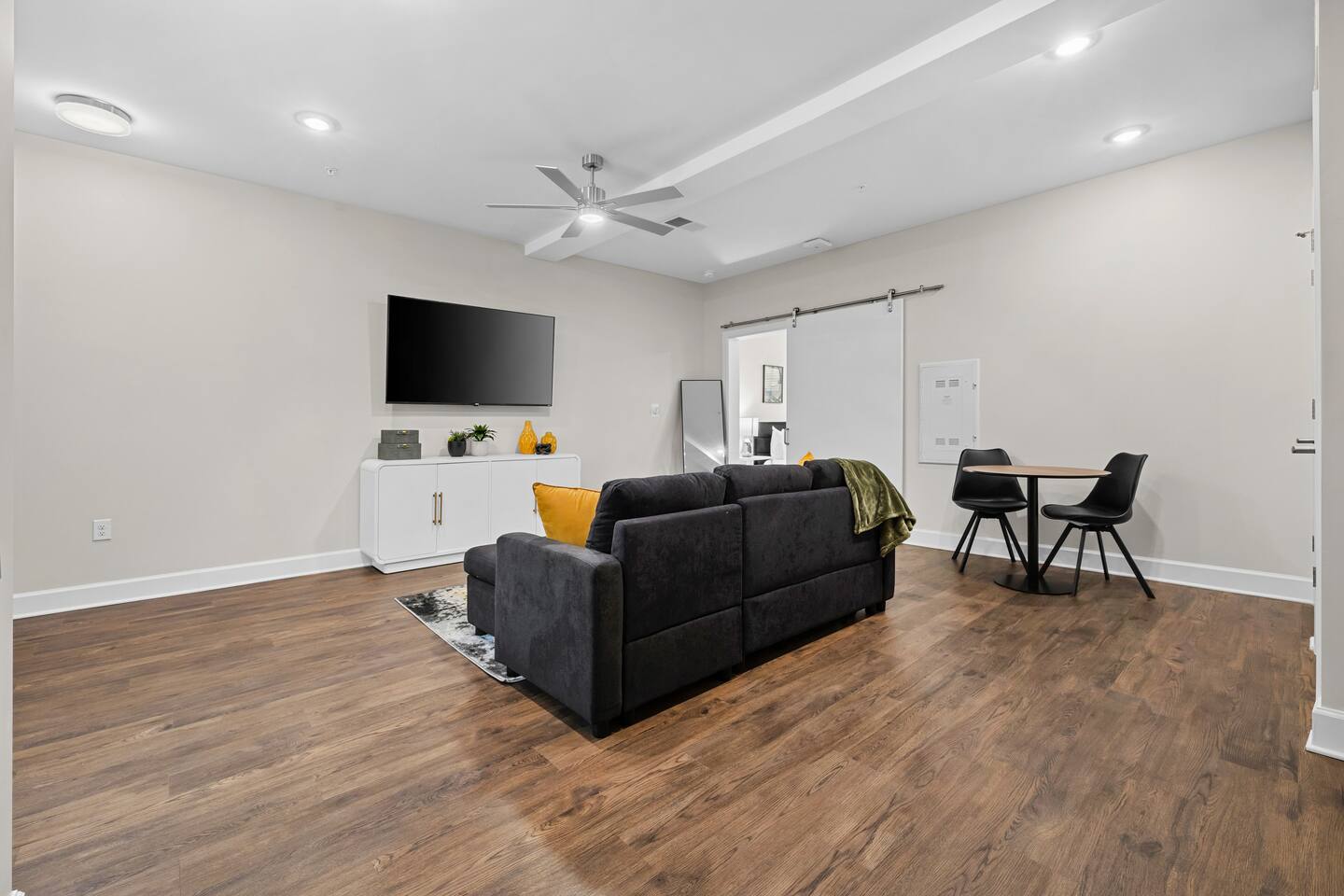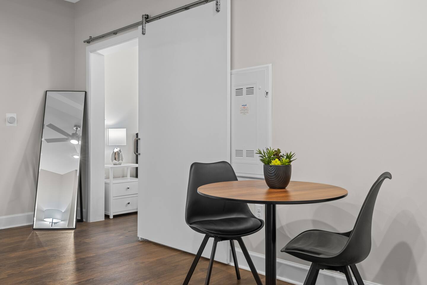 Stay in style at this sleek black-and-white 1BR apartment just a 15-minute walk to Broadway and steps from The Gulch. Perfect for couples or small groups, it features a queen bed, sofa sleeper, luxury air mattress, spa-style bathroom, and access to a rooftop pool, sky lounge, and fitness center. Explore Nashville’s best restaurants, music venues, and nightlife—all just minutes away.