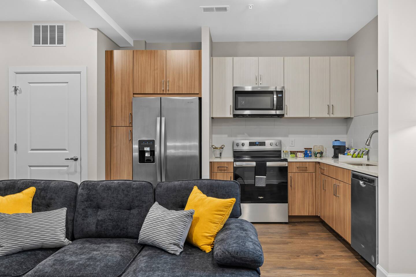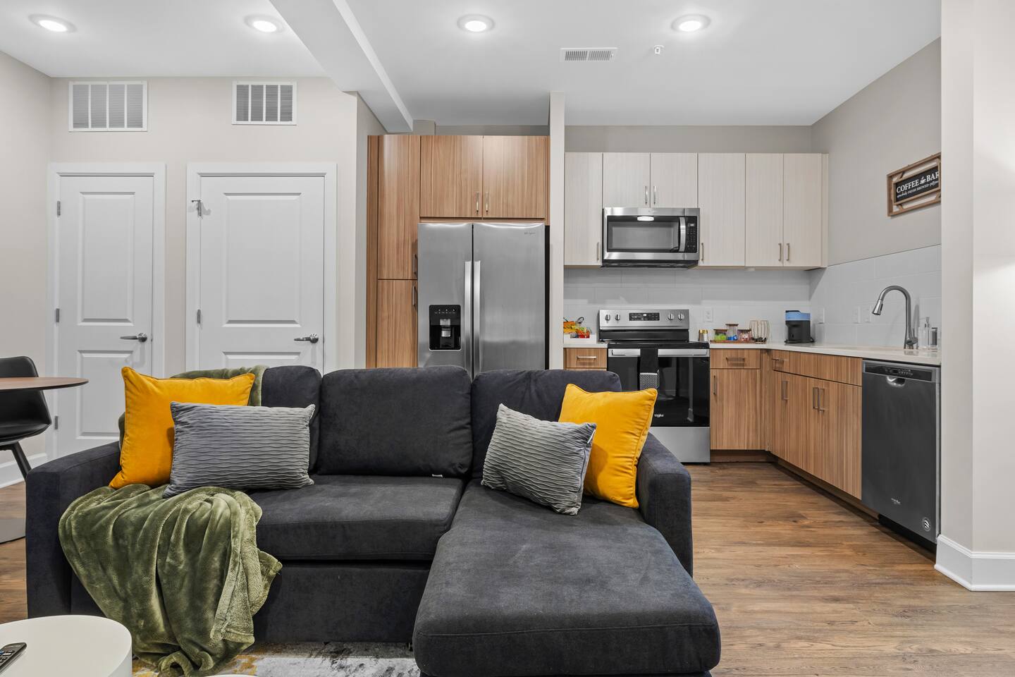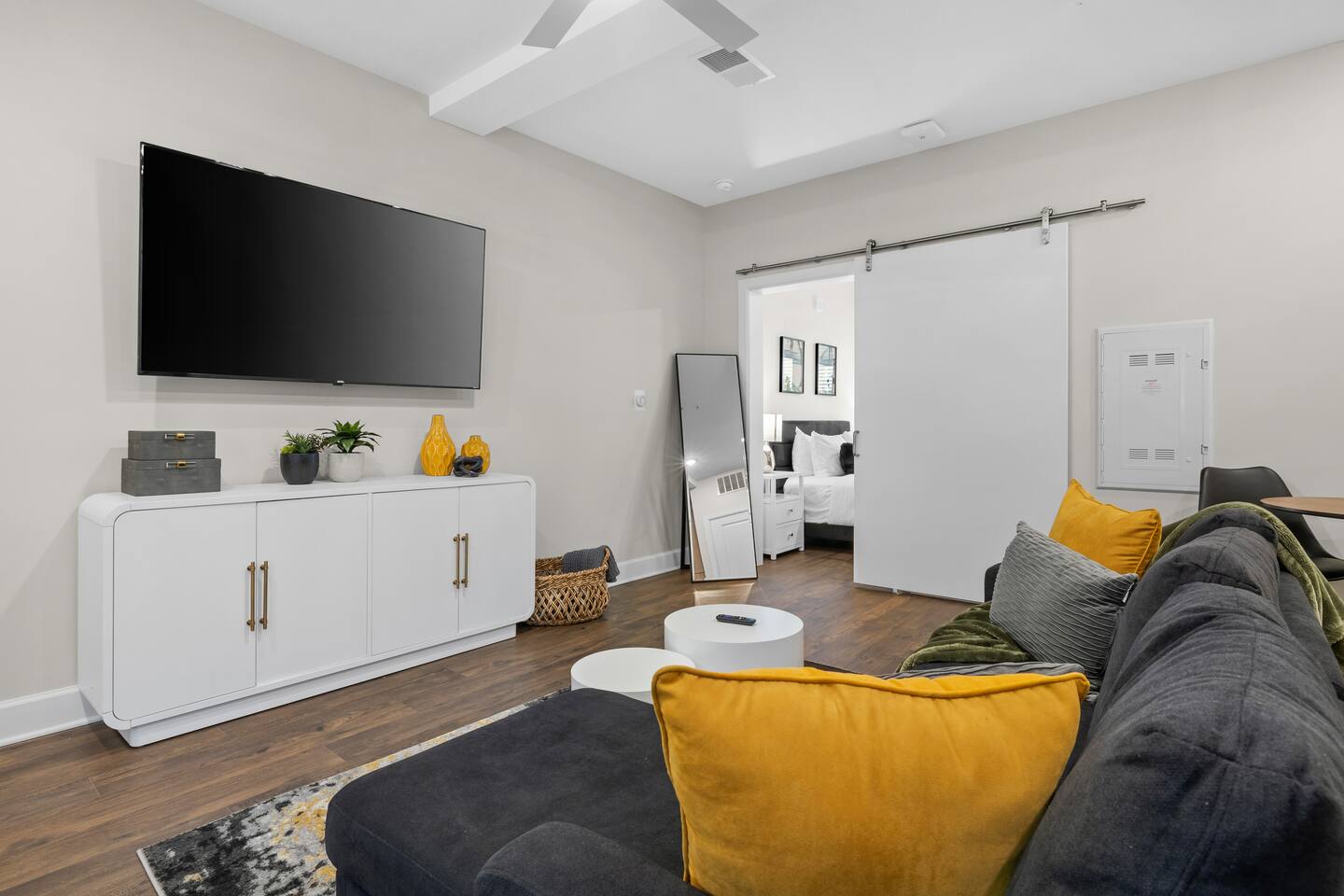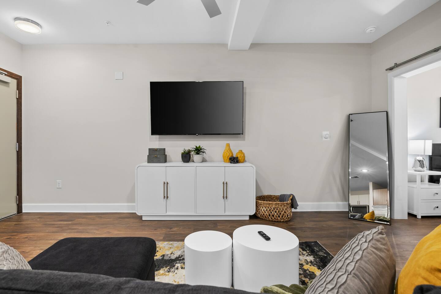 Stay in style at this modern 1BR/1BA Nashville apartment, designed with a bold black-and-white aesthetic and upscale touches. Just a 15-minute walk to Broadway and steps from The Gulch, it's the perfect spot for couples, solo travelers, or friends looking to explore Music City with ease and comfort. 🛏 Sleeps 6: 1 queen bed, Sofa Sleeper + 1 luxury air mattress 🎯 Great for a romantic getaway, small group, or solo trip Prime Walkable Location: 🎶 15-minute walk to Broadway’s live music, honky-tonks & nightlife 🍽 Steps from The Gulch – Rooftops, shopping & top dining spots 🏟 Near Bridgestone Arena, Nissan Stadium & Music Row What You’ll Love: 🖤 Elegant black-and-white design with a modern, cozy vibe 🛏 Comfy queen bed, Queen sleeper sofa + premium air mattress for extra guests 🏊 Infinity saltwater pool with city skyline views 🌇 Sky lounge – perfect for drinks and sunsets 💪 Full on-site fitness center 🚗 Garage parking available for $35/night Walkable Attractions: 🎻 The Station Inn (4 min) 🖼 Frist Art Museum (6 min) 🎤 Ryman Auditorium (15 min) 🏛 Music City Center (10 min) 🏆 Country Music Hall of Fame (15 min) With walkable access to top attractions, a sleek and stylish interior, and resort-style amenities, this apartment is your ideal Nashville home base. Book now to experience the city in elevated comfort! 🎶✨ Permit #2025023735