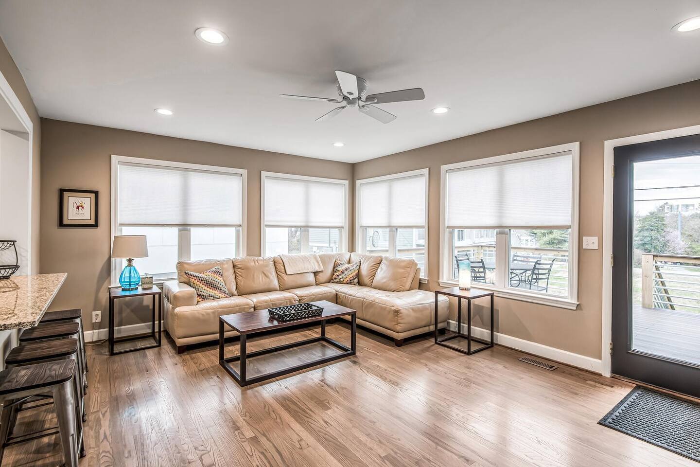 Welcome to your Nashville retreat, perfectly situated in a charming residential neighborhood between 8th Avenue South and Downtown—ideal for your Music City adventure! Layout: This spacious home features a well-thought-out floor plan. On the first level, you'll find a fully equipped kitchen, dining room, sunroom/living room, and three comfortable bedrooms. Two of the bedrooms, each with a queen bed, share a Jack and Jill bathroom with a walk-in shower. The king bedroom boasts an en suite bathroom with a walk-in shower. The second level offers a cozy landing and study area with a twin daybed, along with another king bedroom featuring an en suite bathroom with a tub/shower combo. Step outside to a large deck with seating, perfect for relaxing after a day of exploring. Neighborhood: Nestled in the quaint Berry Hill area, you'll be directly across from a park, close to multiple recording studios, and conveniently located near downtown with easy access to all major interstates. House Rules: Please be considerate of our lovely neighborhood. Quiet hours are from 10pm to 7am. Enjoy your stay! Permit Number:2025-02-13-624