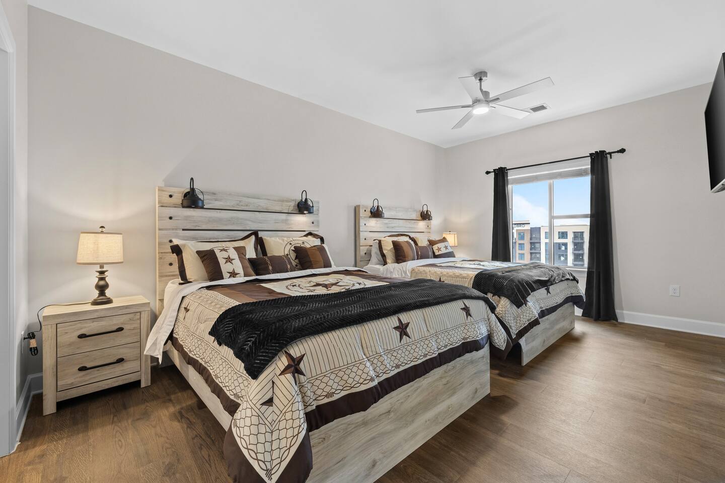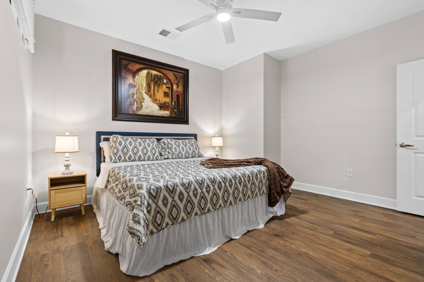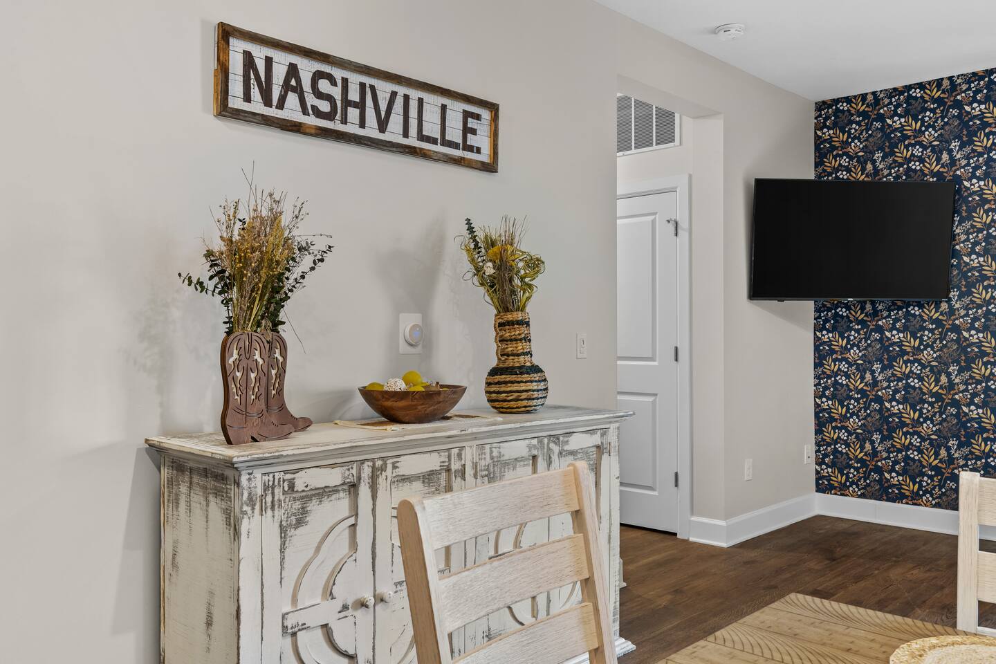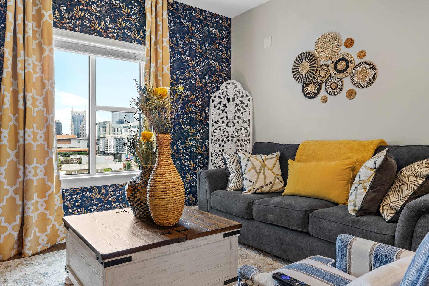THE SPACE: Welcome to your refined country escape in the heart of Nashville! This 2-bedroom, 2-bathroom apartment blends classic Southern charm with modern sophistication — the perfect home base for groups, couples, or music lovers looking to soak up the soul of Music City. 🪕 Thoughtfully styled with warm textures and Nashville-inspired details 🛏 Sleeps 8: 1 Queen, 2 Queen beds, and a comfy sofa sleeper 🍳 Fully stocked kitchen with modern appliances & coffee setup 📺 Smart TVs in every room — perfect for movie nights or lazy mornings 🛁 Two private bathrooms with plush towels & spa-like touches 🌆 Enjoy peekaboo views of the city and a cozy, relaxed atmosphere Whether you’re here for a bachelorette bash, weekend concert, or relaxing getaway, this space hits all the right notes. THE BUILDING: Set in one of Nashville’s most vibrant and walkable neighborhoods, this luxury complex offers resort-style amenities: 🏊 Pool with lounge seating and skyline backdrop 💪 High-end fitness center 🚘 Secure garage parking available for $35/night 🛋 Lounge spaces and elevators for easy access and comfort THE LOCATION: Steps from The Gulch and just a short walk to Broadway, you’ll have Music City at your doorstep: 🎤 Broadway (12 min walk) – Honky-tonks, live music & nightlife 🍽 The Gulch (5 min walk) – Trendy eats, rooftop bars & shopping 🏟 Bridgestone Arena & Music City Center (5–10 min drive) 🎸 Music Row (5 min) – Where Nashville’s music legacy lives ☕ Coffee shops, breweries, and boutiques all around Whether you’re kicking back or heading out, this classy country retreat offers the best of Nashville — with personality, comfort, and charm. Permit #2025043913