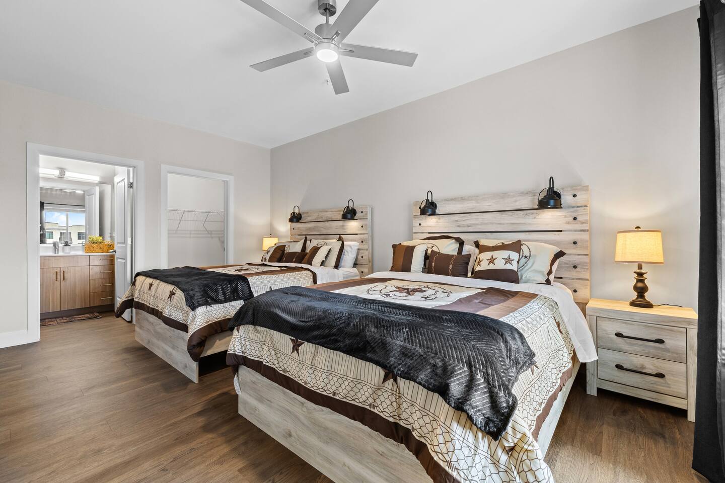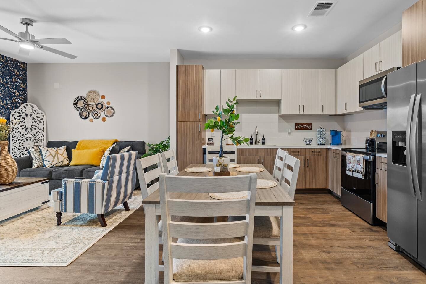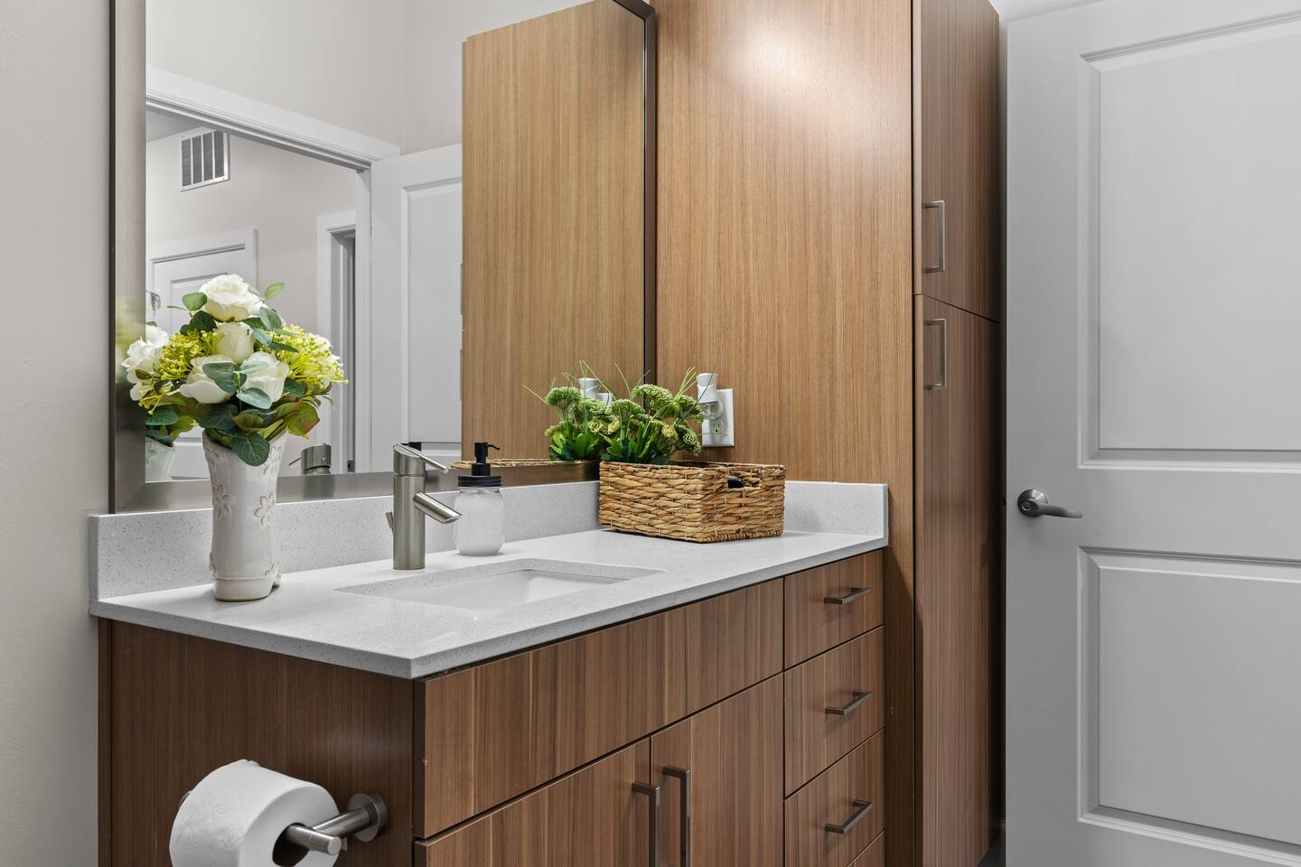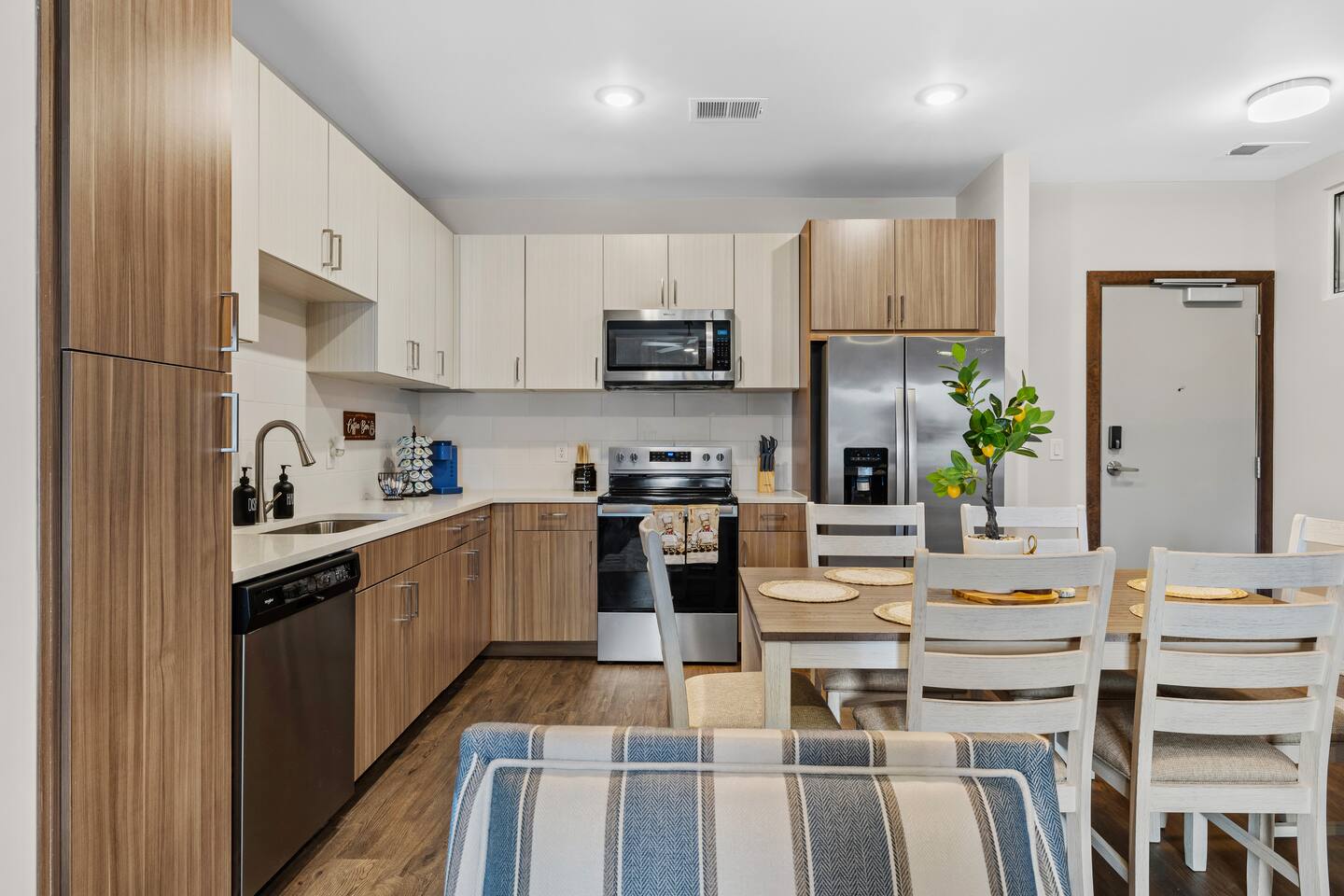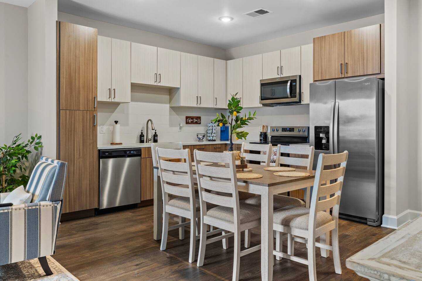 Experience refined Southern charm in this 2BR/2BA Nashville retreat just a short walk to The Gulch and Broadway. Sleeps 8 with a smart TV, a full kitchen, modern amenities, and access to a resort-style pool and gym. Blending country style with city comfort — it's the perfect space for your Music City stay.