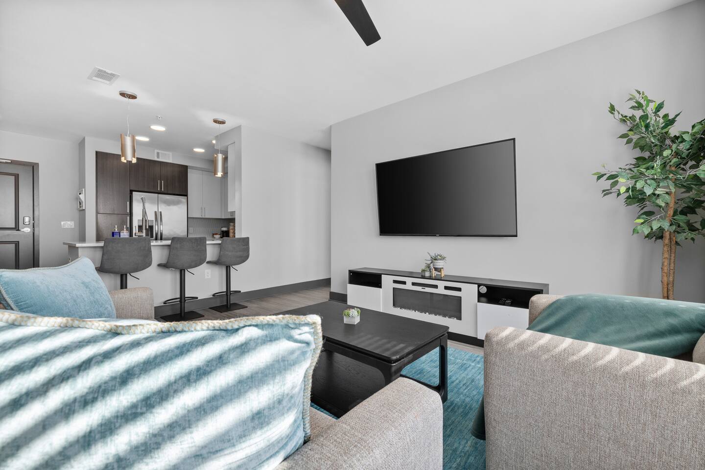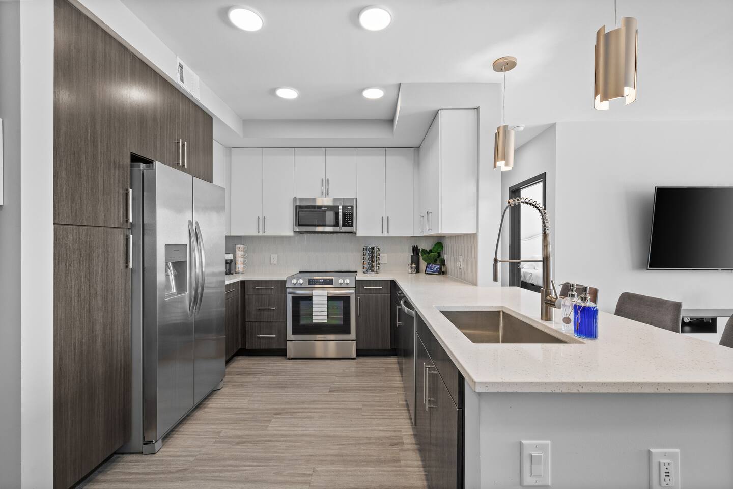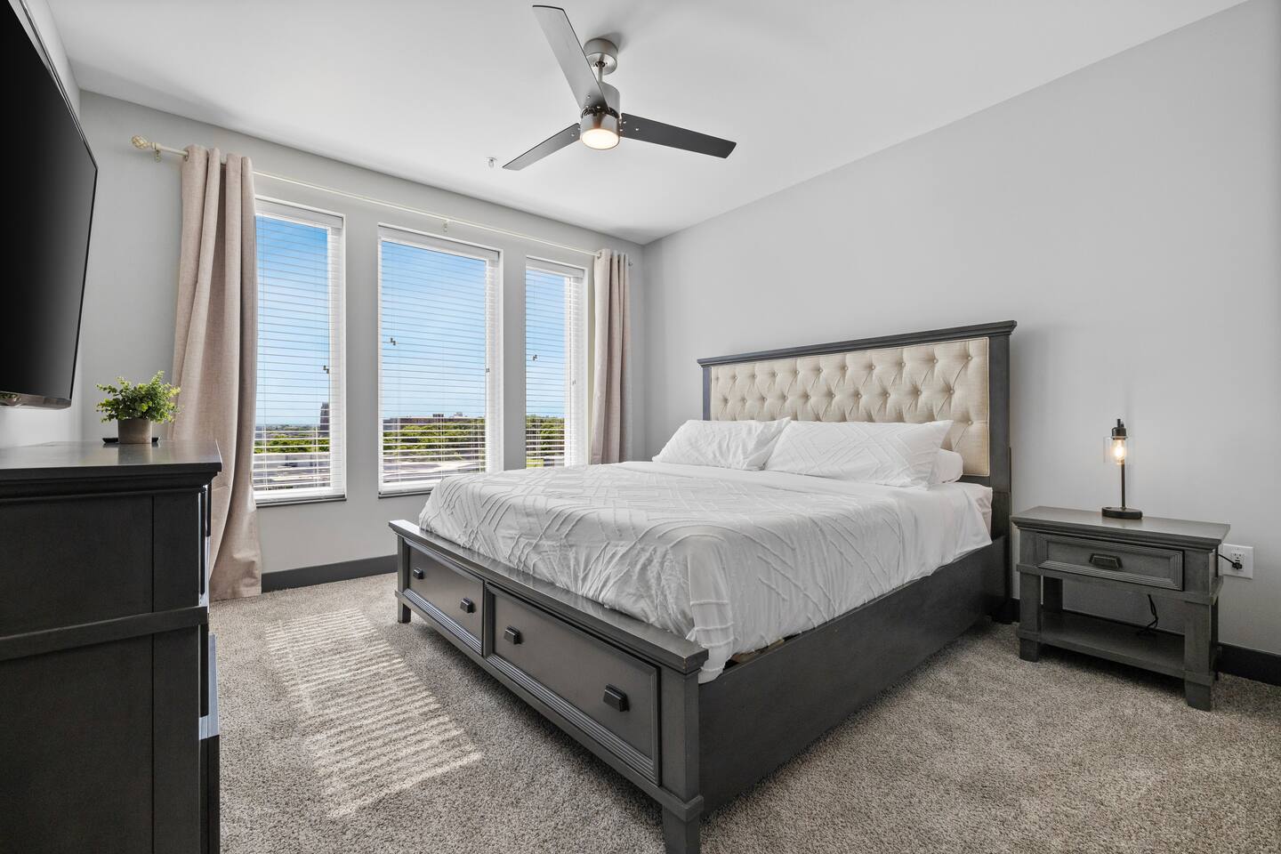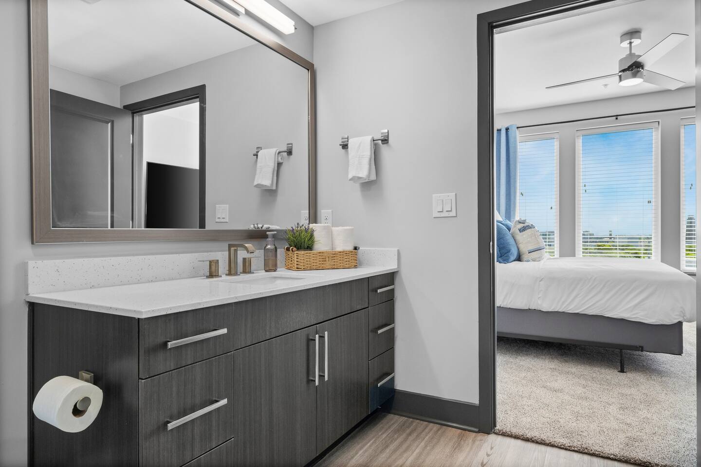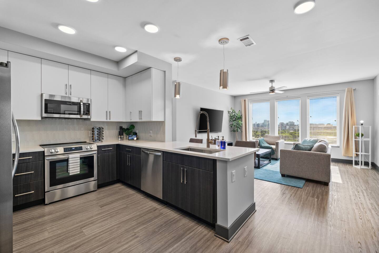🎶 Modern Nashville Escape – City Views & Luxe Vibes! 🎸 THE SPACE: Welcome to your stylish home base in Music City! This beautifully designed 2-bedroom, 2-bathroom apartment offers the perfect blend of comfort, convenience, and city charm — ideal for weekend getaways, friend groups, or business travelers. 🌆 Bright living space with downtown Nashville skyline views 🍳 Fully equipped kitchen with stainless steel appliances & essentials 🛏 Sleeps 6 comfortably: 1 King, 1 Queen, and a sofa sleeper 🛁 Two modern bathrooms with fresh towels and spa-like finishes 📺 Smart TVs in every room — stream, unwind, and stay entertained 🛋 Cozy layout with a Nashville-inspired vibe that feels like home THE BUILDING: Enjoy resort-style perks in this upscale community designed for relaxation and convenience: 🏊 Outdoor pool with lounge seating and skyline backdrop 💪 24/7 fitness center with cardio & strength equipment 🛋 Co-working and social lounges to work or hang out 🚗 Secure garage parking available for $25/night THE LOCATION: Centrally located in one of Nashville’s most dynamic neighborhoods, you’re never far from the action: 🎸 Broadway (10 min drive) – Music, nightlife, and honky-tonks 🍸 The Gulch (7 min) – Trendy restaurants, rooftop bars & shopping 🏟 Bridgestone Arena & Nissan Stadium (10–12 min) 🎤 Music Row (5 min) – The heartbeat of Nashville’s music industry ☕ Local cafés, breweries & boutiques just minutes away From skyline views to smart comforts and unbeatable access to Nashville’s top spots, this apartment is the perfect launchpad for your Music City experience. Book your stay and make it unforgettable! 🎷✨ Permit #2025037980