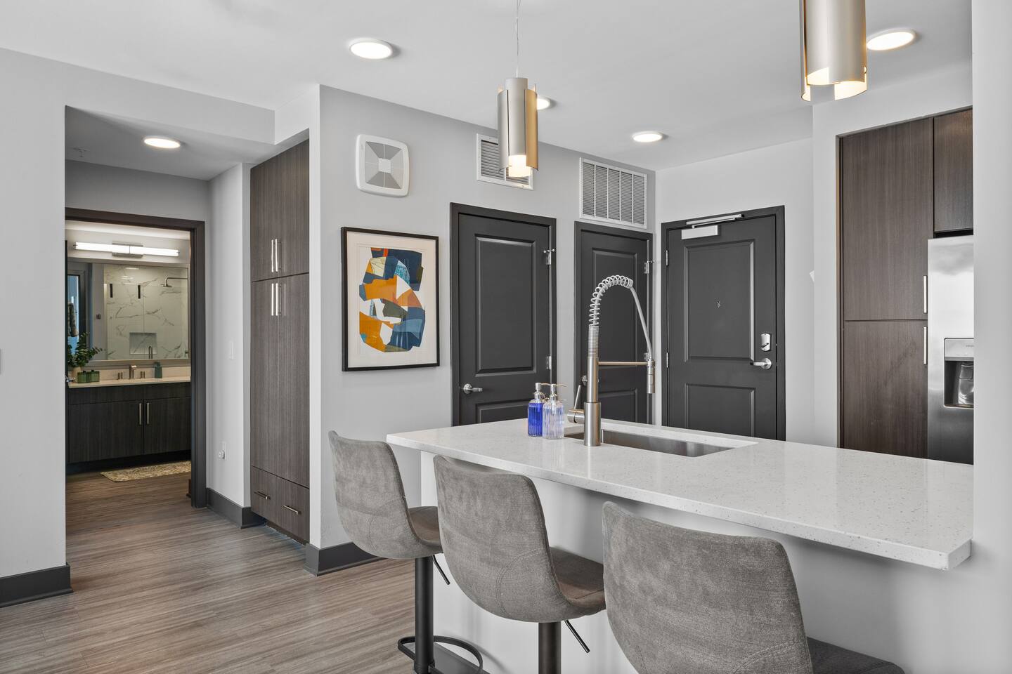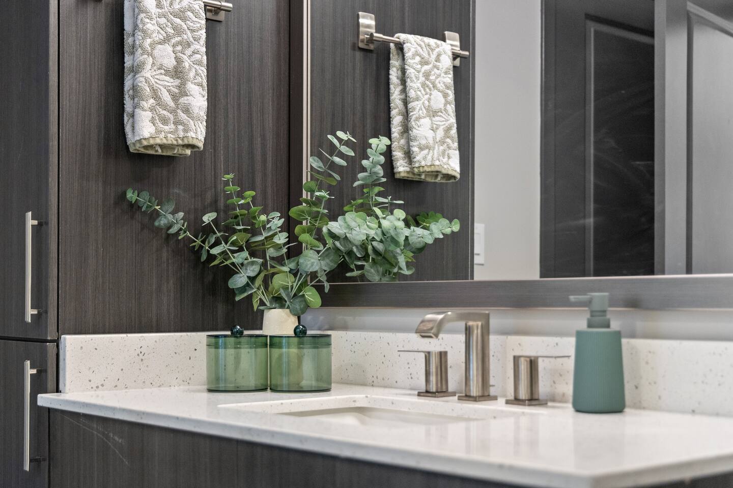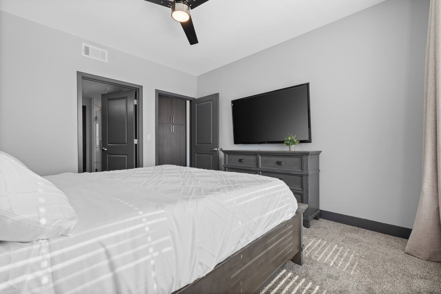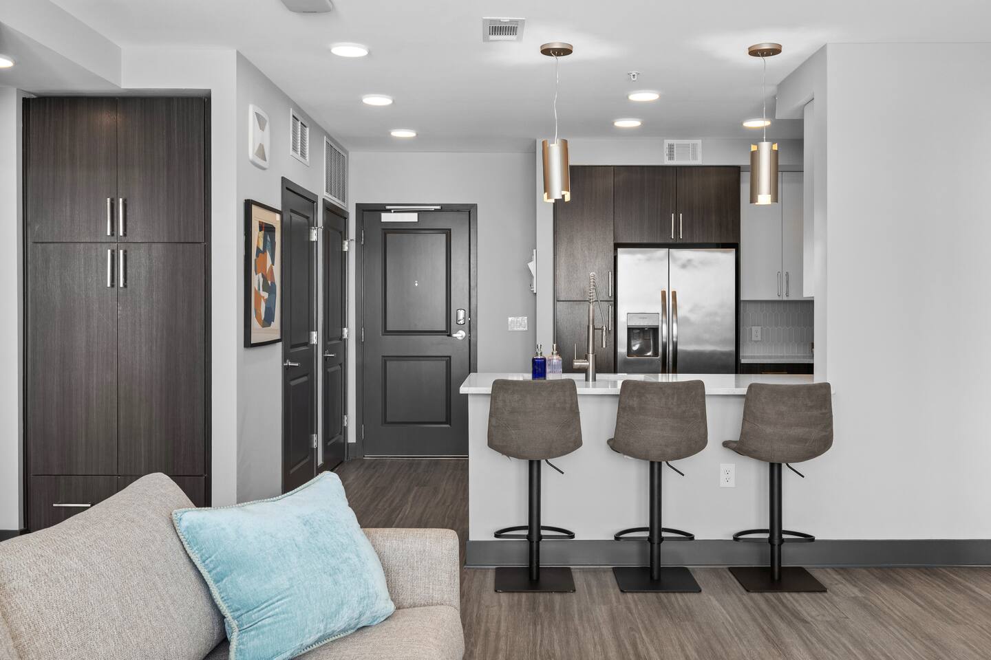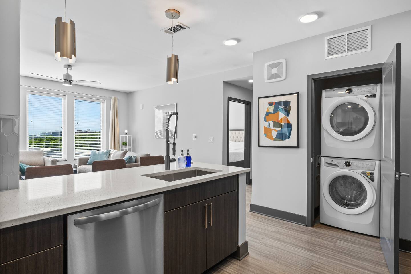🎶 Modern Nashville Escape – City Views & Luxe Vibes! 🎸 THE SPACE: Welcome to your stylish home base in Music City! This beautifully designed 2-bedroom, 2-bathroom apartment offers the perfect blend of comfort, convenience, and city charm — ideal for weekend getaways, friend groups, or business travelers. 🌆 Bright living space with downtown Nashville skyline views 🍳 Fully equipped kitchen with stainless steel appliances & essentials 🛏 Sleeps 6 comfortably: 1 King, 1 Queen, and a sofa sleeper 🛁 Two modern bathrooms with fresh towels and spa-like finishes 📺 Smart TVs in every room — stream, unwind, and stay entertained 🛋 Cozy layout with a Nashville-inspired vibe that feels like home THE BUILDING: Enjoy resort-style perks in this upscale community designed for relaxation and convenience: 🏊 Outdoor pool with lounge seating and skyline backdrop 💪 24/7 fitness center with cardio & strength equipment 🛋 Co-working and social lounges to work or hang out 🚗 Secure garage parking available for $25/night THE LOCATION: Centrally located in one of Nashville’s most dynamic neighborhoods, you’re never far from the action: 🎸 Broadway (10 min drive) – Music, nightlife, and honky-tonks 🍸 The Gulch (7 min) – Trendy restaurants, rooftop bars & shopping 🏟 Bridgestone Arena & Nissan Stadium (10–12 min) 🎤 Music Row (5 min) – The heartbeat of Nashville’s music industry ☕ Local cafés, breweries & boutiques just minutes away From skyline views to smart comforts and unbeatable access to Nashville’s top spots, this apartment is the perfect launchpad for your Music City experience. Book your stay and make it unforgettable! 🎷✨ Permit #2025037980