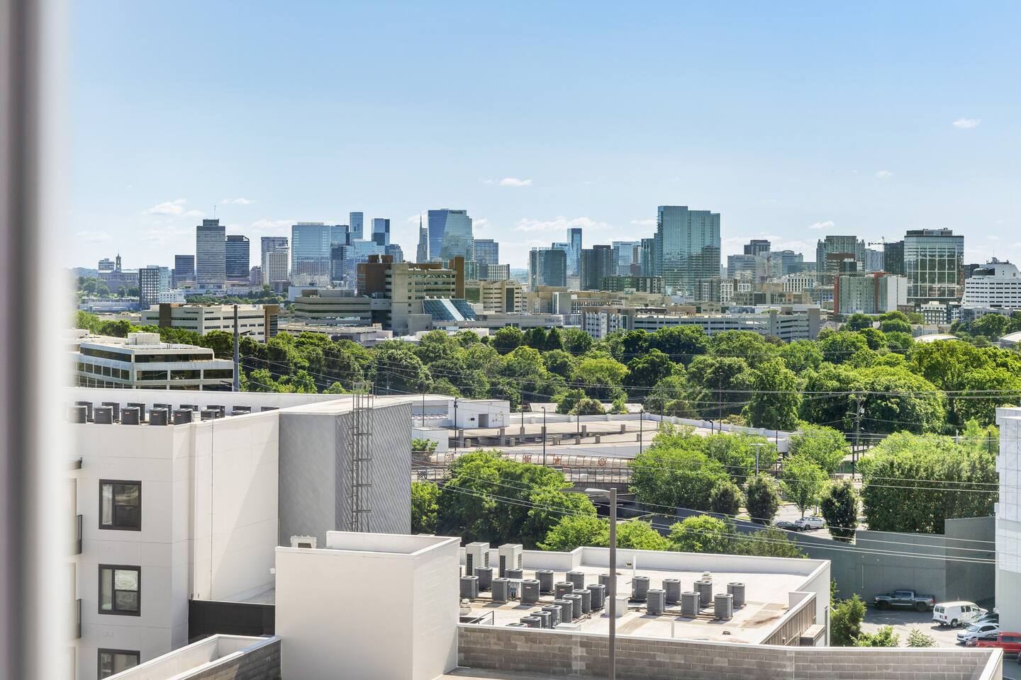 Stay in style at this modern 2BR/2BA apartment with skyline views just minutes from Broadway, The Gulch & Music Row. Sleeps 6 with a king, queen, and sofa bed. Enjoy TVs in every room, a full kitchen, resort-style pool, fitness center, and secure parking. Perfect for weekend escapes, group trips, or business travel. Book your Nashville getaway today!