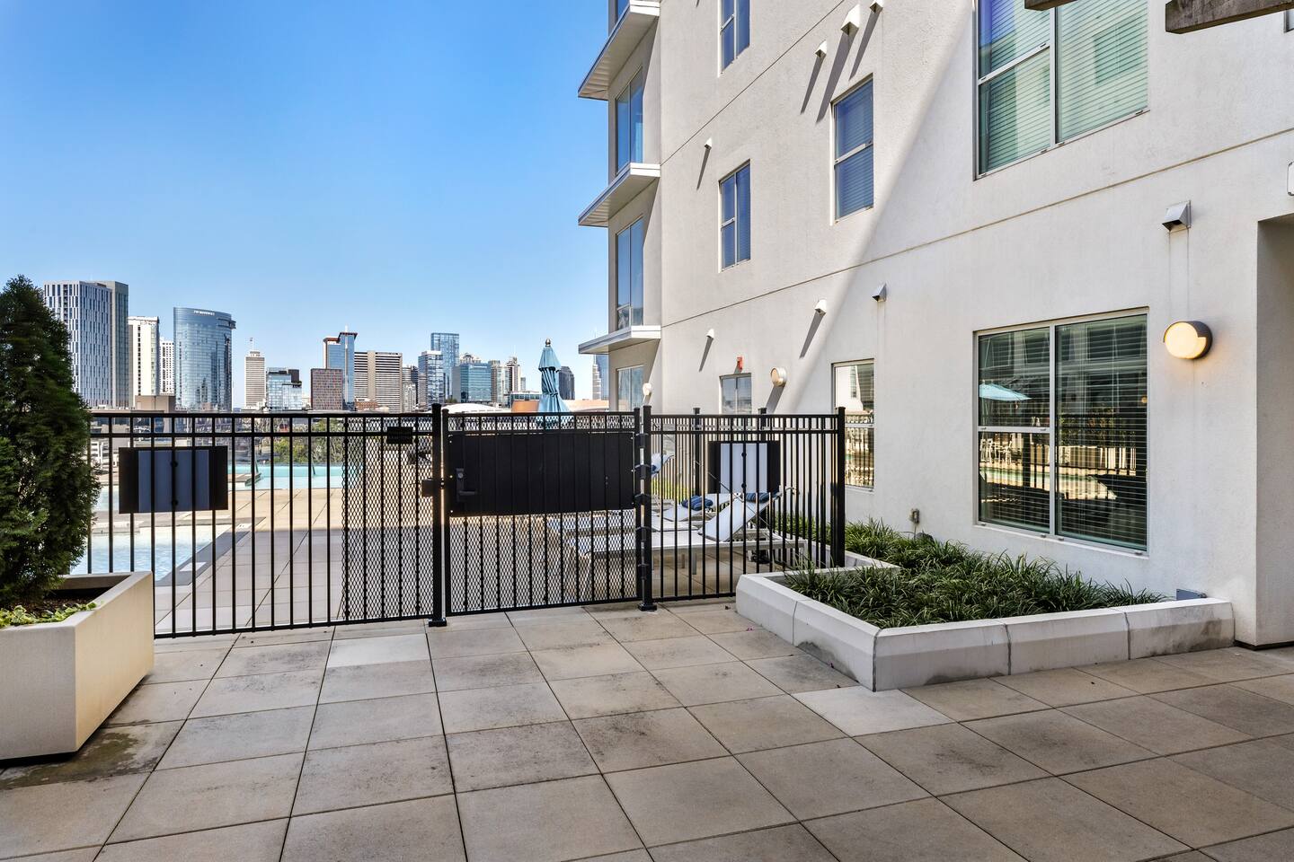 While we strive to provide a comfortable and enjoyable stay, we are not responsible for the maintenance or availability of building amenities such as the pool, gym, elevator, or laundry facilities, as these are managed by the building. Refunds will not be issued for any amenity that is unavailable or out of service during your stay Building amenities/common spaces are shared with other guests in the building. PLEASE NOTE: there are security cameras present in the common areas of the building. They are located in the following areas: courtyard, parking areas, lobby, sky lounge and pool.