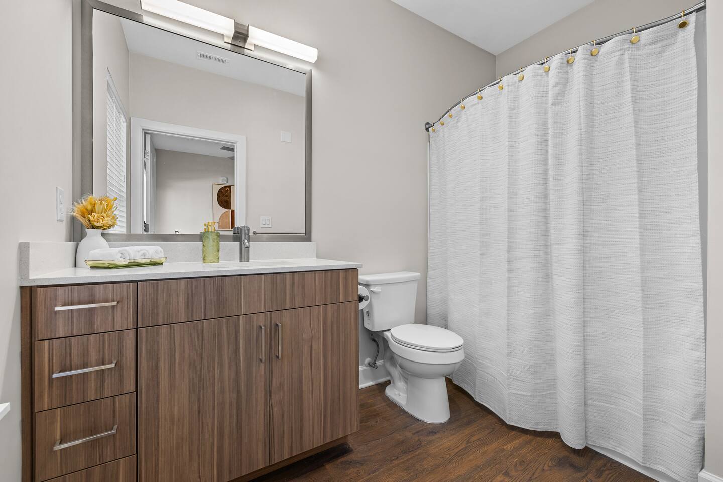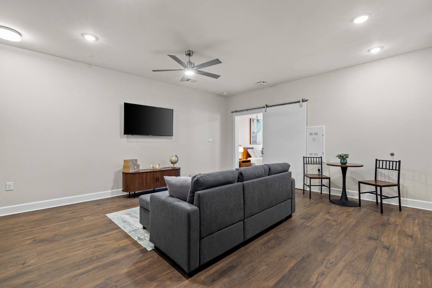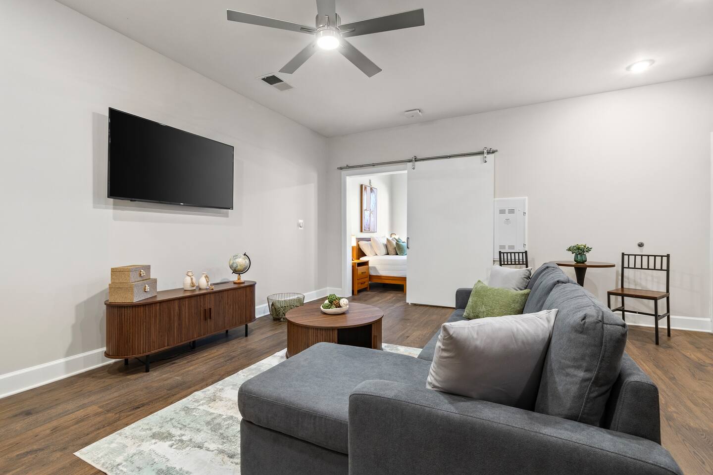 Step into your cozy and modern Nashville retreat — a 1-bedroom, 1-bathroom gem designed for comfort, convenience, and a touch of Music City charm. Perfect for couples, small groups, or solo travelers who want to stay close to the action while enjoying a peaceful place to unwind. 🛋️ Bright, open living area with plush seating and a convertible sleeper sofa for extra guests 🛏️ Bedroom: Queen bed with soft linens and warm, inviting décor 💤 Additional sleeping: Queen air mattress available for flexible arrangements 🍳 Fully equipped kitchen with stainless steel appliances and everything you need for morning coffee or a home-cooked meal 🚿 Sleek bathroom with premium finishes and hotel-quality towels Whether you’re relaxing between honky-tonk adventures or working remotely, this space gives you the best of both worlds — stylish comfort and Nashville flair. THE BUILDING: Enjoy a boutique-living experience with convenient amenities: 🏋️♀️ Fitness center access 📶 High-speed WiFi and dedicated work area 🔒 Secure building with keyless entry PARKING: 🚗 Secure on-site parking is available for $35 per night. THE AREA: You’ll be perfectly situated near some of Nashville’s most exciting neighborhoods and attractions! 🎸 Broadway – about a 15 minute walk ☕ Trendy coffee shops & brunch spots within walking distance 🍴 Local restaurants and bars featuring live music and southern flavor 🏟️ Bridgestone Arena & Nissan Stadium – minutes away for concerts and games With its prime location, modern comforts, and welcoming vibe, this 1BR getaway is the perfect home base for your next Nashville adventure. Book your stay today and experience the rhythm of the city in style! 🎤✨