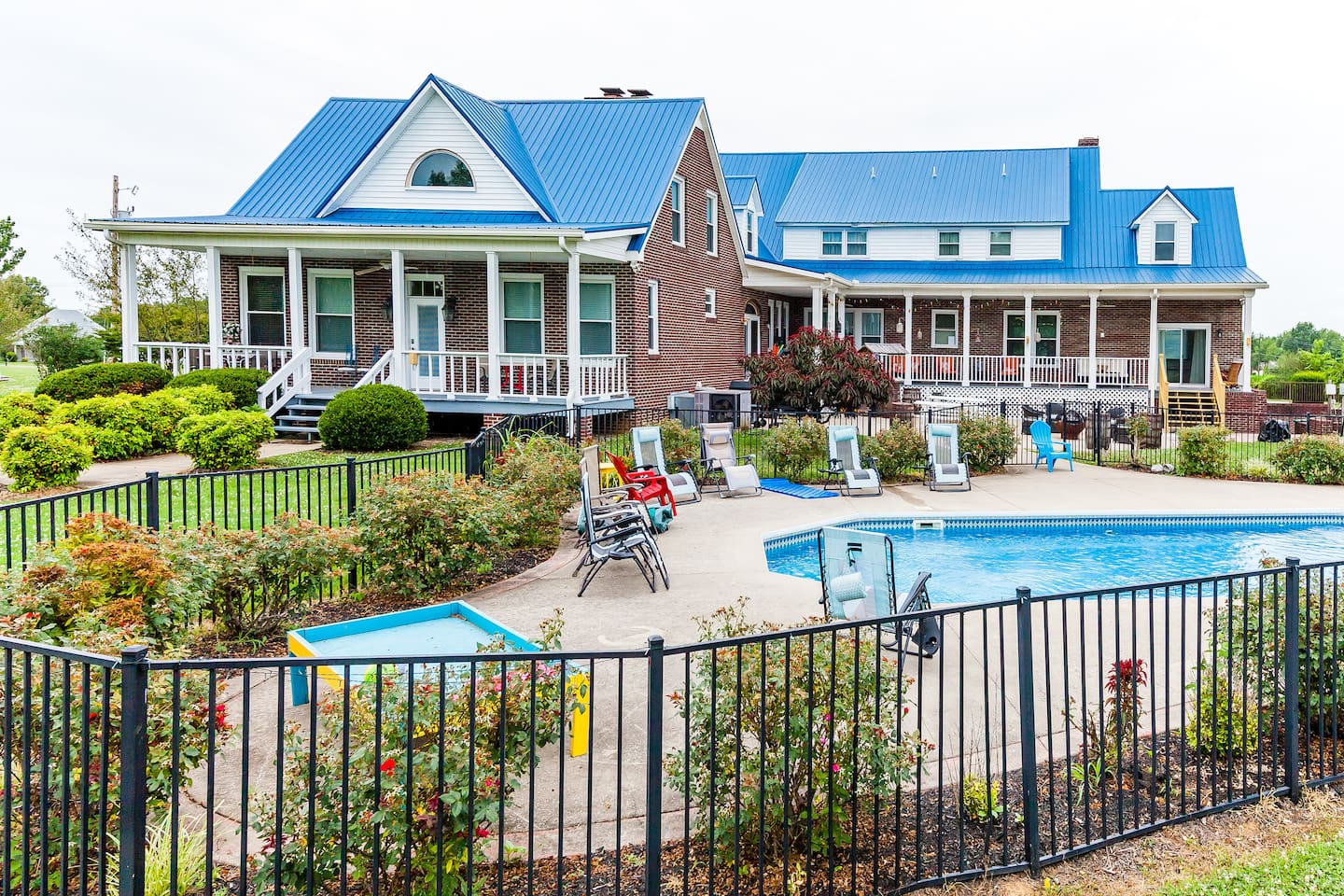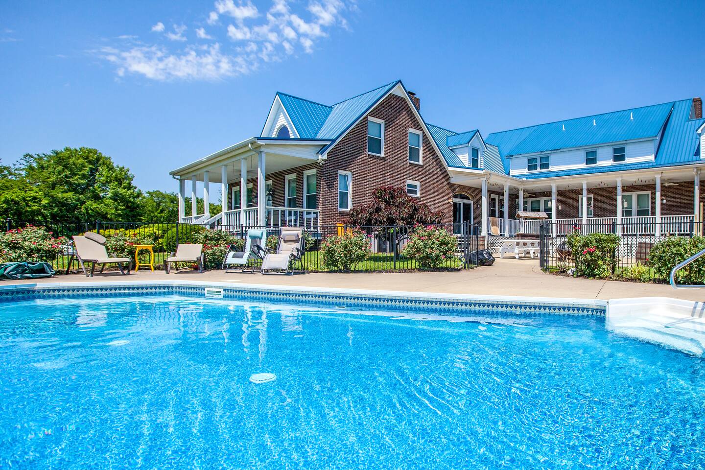 Escape to Genesis Country Estate, a luxurious 10,000 sq. ft. farmhouse on 7 private acres in Middle Tennessee. With 8 bedrooms, 8.5 baths, 3 cozy living rooms, a gourmet kitchen, heated saltwater pool, spa room, gym, game room, and wraparound porch, it’s perfect for gatherings or a relaxing getaway. Optional spa services are available, and wedding/event packages for up to 100 guests can be arranged. Enjoy country charm, modern amenities, and peaceful surroundings for an unforgettable stay!