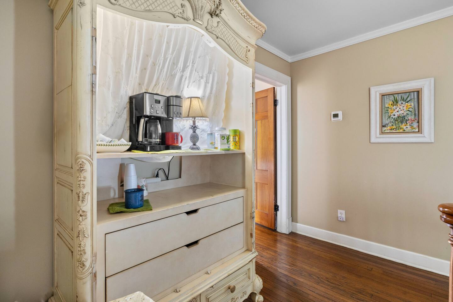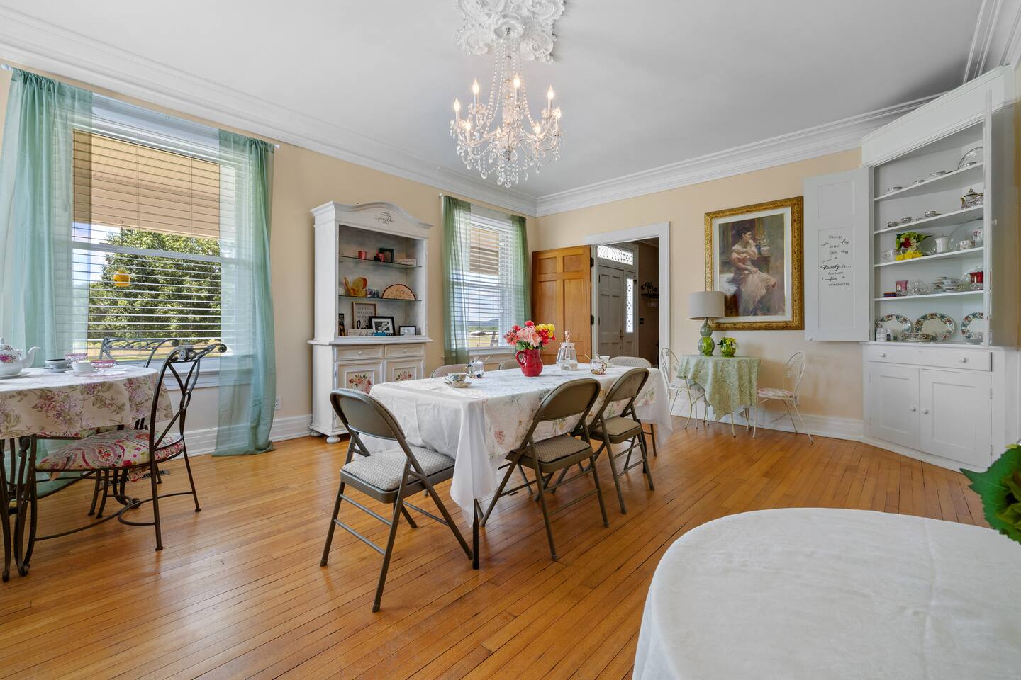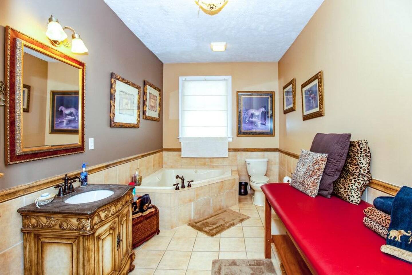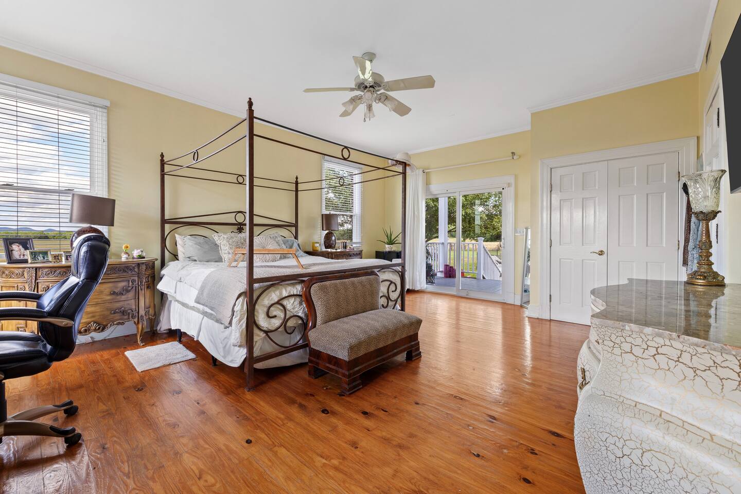 Welcome to Genesis Country Estate – The Master King Suite 🌿👑 Indulge in elevated country luxury with a stay in the Master King Suite at Genesis Country Estate. This private room offers the most spacious and serene accommodations in the home, ideal for couples, solo travelers, or anyone in need of rest and rejuvenation. Set within a stunning 10,000 sq. ft. farmhouse on 7 rolling acres, the estate blends refined comfort with the peace of the Tennessee countryside. 🛌 Your Private Master Suite Includes: 1 King Bed – Sink into hotel-quality bedding, downy pillows, and high-end linens. En Suite Bathroom – Spacious and spa-inspired, with premium toiletries and plush towels. Relax in the soaking tub or enjoy a walk in shower. Private Sitting Area – A peaceful nook to read, sip coffee, or simply unwind. Direct Access to Estate Amenities – Enjoy the beauty and luxury of the full home and grounds. 🌟 Amenities You’ll Love Spa Room – Complete with a jacuzzi tub and relaxing spa products. Gourmet Kitchen – Featuring commercial-grade appliances, two dishwashers, and a fully stocked spice pantry. Heated Saltwater Pool – Float, sunbathe, or enjoy an evening swim under the stars. Multiple Living Rooms – Cozy up by the fireplace or lounge with a good book. Game Room & Home Gym – Includes pool table, fitness gear, yoga mats, and more. Library & Art Room – Ideal for journaling, painting, or a quiet escape. 🎁 Complimentary Touches Organic coffee & tea station ☕ PH-balanced water & crystal-clear ice ❄️ Fast WiFi, spa towels, and fresh linens 🧺 🌳 Outdoor Serenity Sip your morning coffee on the wraparound porch with views of grazing deer, dine al fresco by the pool, or explore the peaceful hills that surround the property. 💆♀️ Optional Spa Services Looking to truly unwind? The estate’s owner—an experienced wellness practitioner—offers massages, facials, and holistic treatments by appointment. Whether you’re celebrating something special or simply in need of a luxurious escape, the Master King Suite at Genesis Country Estate is your perfect home-away-from-home. ✨ Book now and experience peace, space, and Southern charm in one unforgettable stay.