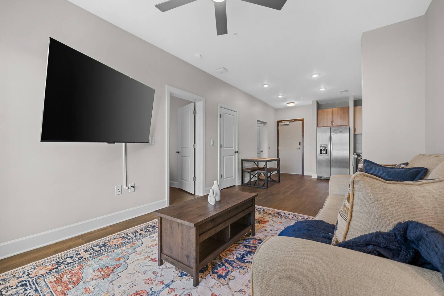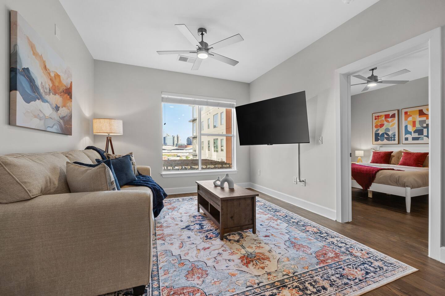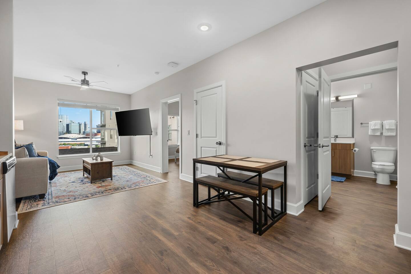 Colorful City Escape – Walk to Broadway & The Gulch 🎨🌆 Light-filled and full of personality, this 1BR/1BA apartment is perfect for a fun Nashville getaway. With vibrant decor, cozy furnishings, and skyline views, it’s the ideal spot to relax and recharge—just steps from The Gulch and a 15-minute walk to Broadway’s live music and nightlife. 🛏 Sleeps 6: 1 Queen Bed + Pullout Sofa + 2 Rollaway Beds 🌇 Bright, modern design with floor-to-ceiling windows Prime Location – Walkable to It All: 🎶 Broadway’s honky-tonks & entertainment – 15 mins 🍽 The Gulch – Trendy restaurants, shopping & rooftops 🏟 Close to Bridgestone Arena, Music Row & Nissan Stadium Perks You’ll Love: ☀️ Colorful, cheerful design and open living space 🏊 Heated rooftop saltwater pool with skyline views 💪 Full gym for your morning workouts 🌇 Rooftop sky lounge – ideal for sunsets & social hangs 🚗 On-site garage parking available for $35/night Walkable Attractions: 🎻 The Station Inn (4 min) 🖼 Frist Art Museum (6 min) 🎤 Ryman Auditorium (15 min) 🏛 Music City Center (10 min) 🏆 Country Music Hall of Fame (15 min) Whether you’re here for a weekend of music, food, or fun, this colorful city escape offers everything you need for an unforgettable stay in the heart of Nashville. Book now and enjoy Music City in full color! 🎶✨ Permit #2025026349