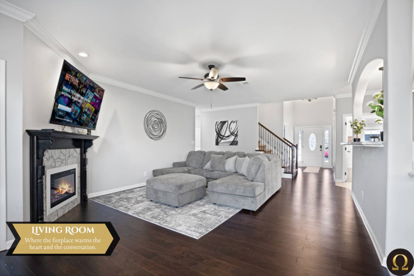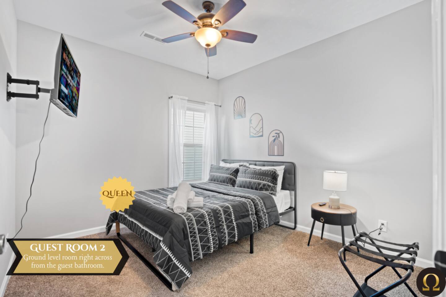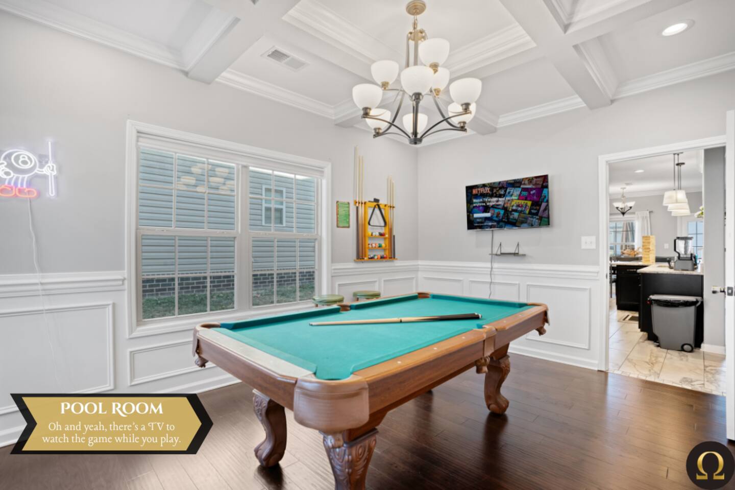 Welcome to The Ωmega — a 5-bedroom, 3-bath, 2,763 sq. ft. home designed for fun, relaxation, and connection. Perfect for families, groups, and friends’ getaways, this modern retreat combines luxury living with endless entertainment options right under one roof. ✨ The Space Step inside and experience a bright, open-concept layout with all the essentials for hosting and relaxing: 🛋 Cozy Living Room – Gather around the fireplace for movie nights or family time. 🍳 Fully Stocked Kitchen – Stainless steel appliances, plenty of prep space, and all the cookware you need. 🛏 5 Spacious Bedrooms – Plush bedding, thoughtful decor, and enough space for everyone to rest comfortably. 🎉 A Gamer’s Paradise If you love to play, this home delivers: 🍿 Dedicated Theater & Game Room – Complete with a projector for movie nights, a PS5 console, foosball, and arcade football. 🎱 Pool Table Room – Perfect for friendly competition. 🏓 Ping Pong Battles – Set up in the garage for endless fun. 🏒 Air Hockey Table – A family favorite for fast-paced fun. 🌞 Outdoor Cornhole – Kick back, relax, and enjoy the fresh air. 🌆 Explore Clarksville & Beyond Located in a quiet, family-friendly neighborhood, you’re close to local favorites: 🛍 Downtown Clarksville – Quaint shops, dining, and historic charm (~15 min) 🎶 Beachaven Winery – Live music, wine tastings, and events (~12 min) 🚤 Liberty Park & Marina – Scenic walking trails, fishing, and dining (~15 min) 🏞 Dunbar Cave State Park – Hiking and nature exploration (~20 min) 🎸 Downtown Nashville – Only 45 minutes away if you want to dive into Music City nightlife! 💤 Perfect for Groups With accommodations for up to 12 guests, this home is ideal for: Family reunions Bachelor/bachelorette trips 💍 Wedding parties 💒 Game-filled friends’ weekends 🎮 📌 The Details 5 Bedrooms / 3 Bathrooms Sleeps up to 12 Private Theater & PS5 Setup Pool Table, Ping Pong, Air Hockey, Cornhole Fully Equipped Kitchen Free WiFi & Smart TVs Private Parking Book your stay at The Ωmega today and discover a Clarksville retreat where endless entertainment meets modern comfort. Whether you’re gaming, movie-watching, or exploring the area, this home has everything you need for an unforgettable getaway.