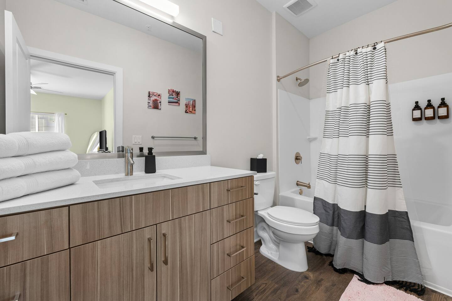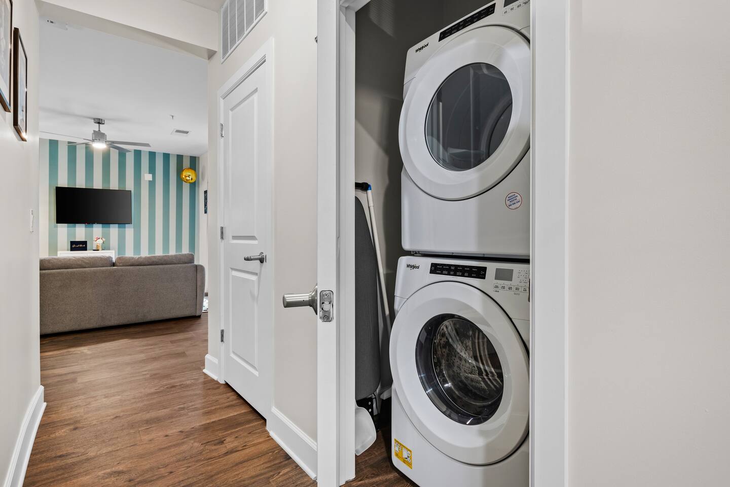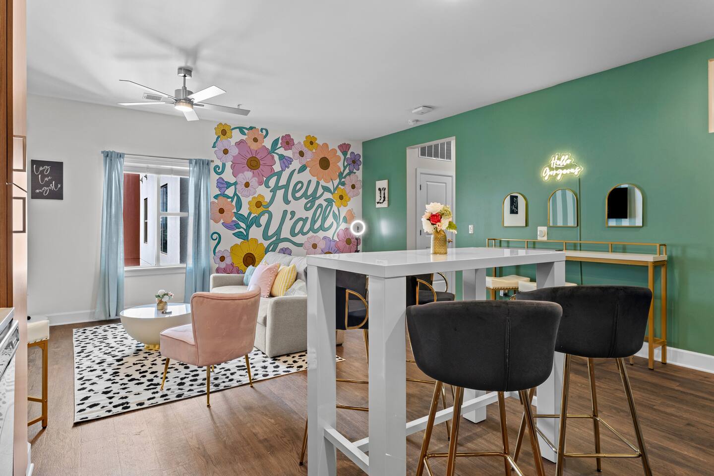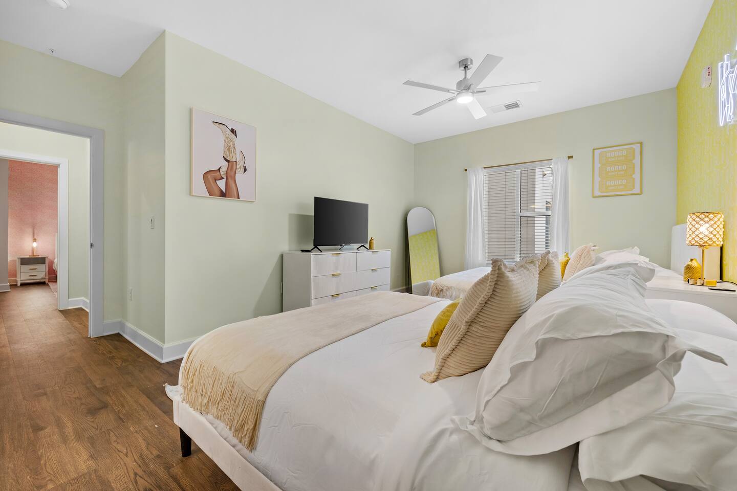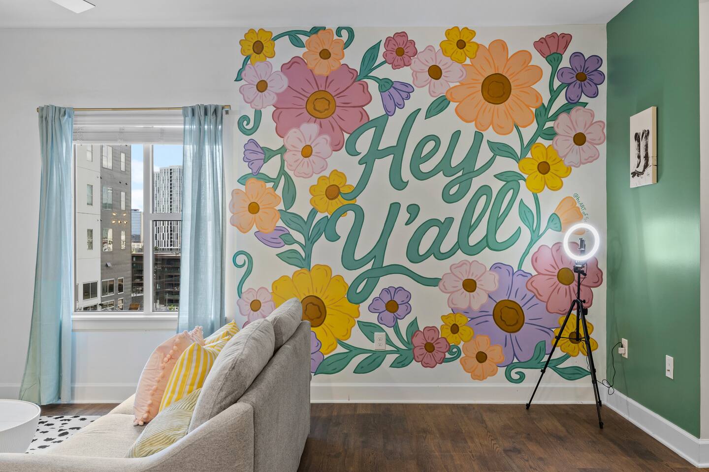 Welcome to your Nashville home away from home! This boldly designed, fun, and comfortable 2-bedroom, 2-bathroom apartment offers the perfect stay for friends, couples, or families looking to explore the best of Music City. With a colorful Nashville-inspired interior and a prime location in one of the city’s most walkable neighborhoods, you’ll be just steps from top restaurants, nightlife, and iconic attractions. 🛏 The Space This thoughtfully appointed apartment includes: Bedroom 1: Spacious with a plush king bed and ensuite bathroom Bedroom 2: Two queen beds with stylish decor and lots of natural light Living Room: Comfy sofa sleeper + rollaway bed for flexible sleeping options Two full bathrooms with fresh towels, toiletries, and great lighting A dedicated glam/makeup station for getting ready in style (perfect for any night out!) Fully equipped kitchen with stainless steel appliances & modern finishes Smart TV, high-speed Wi-Fi, and a cozy living area for downtime Washer & dryer in-unit for extended stays or festival weekends 🏙 Building Amenities Enjoy access to premium on-site amenities during your stay: 🏊 Pool with skyline views – perfect for cooling off after a day in the city 💪 Modern fitness center 🛋 Resident lounge for working or unwinding 🛎 Secure building entry & elevator access 🚗 Parking available for $35/night (please request in advance; limited availability) 📍 Walk to Nashville's Best Located on Division Street in The Gulch, this apartment puts the city at your doorstep: 🎸 Broadway Honky Tonks – 15-minute walk to Tootsie’s, The Stage & more 🍽 Gulch Dining & Nightlife – 5-10 mins to Virago, Biscuit Love, LA Jackson 🏟 Bridgestone Arena – 10 mins for concerts & Predators games 🎭 Ryman Auditorium – 15-minute stroll to the iconic music venue 🏈 Nissan Stadium – 25-minute walk across the pedestrian bridge ☕ Coffee Spots – 5 mins to Barista Parlor, Killebrew, Frothy Monkey 🎉 The Ultimate Nashville Stay Whether you're here for live music, rooftop bars, a celebration weekend, or just exploring the city’s energy, this apartment delivers on style, space, and location. It's a vibrant but comfortable space that works equally well for a girls’ trip, guys’ getaway, couples weekend, or family escape. 📅 Availability fills quickly—book now and make the most of your time in Music City! Permit #2025010513
