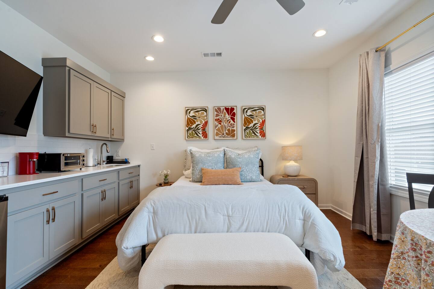 Welcome to your cozy guest suite in charming Oxford, MS, ideal for a football weekend or college visit. This tastefully furnished suite sleeps two, offering a luxurious queen bed, a well-appointed bathroom, and a small sitting area. Enjoy the convenience of a mini-fridge, microwave, and coffee maker. With its prime location near downtown, you’re just minutes from the Square's vibrant dining and entertainment scene. Experience Southern hospitality at its finest in this inviting retreat.