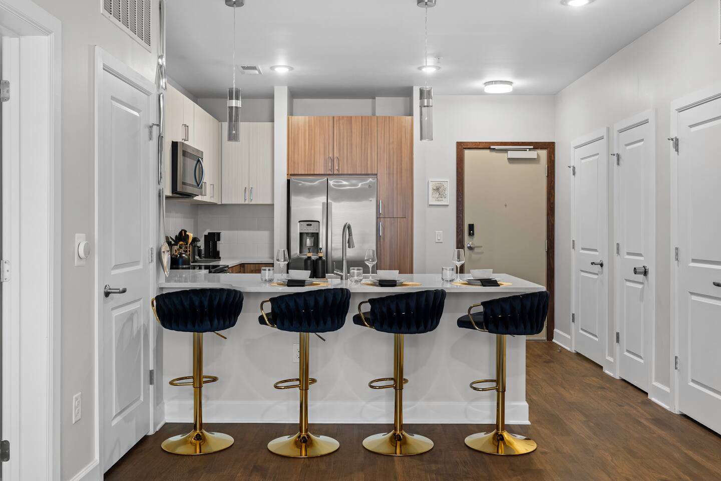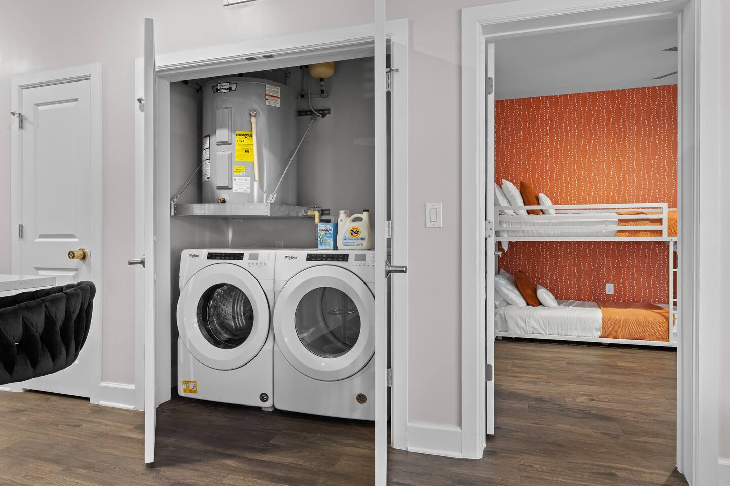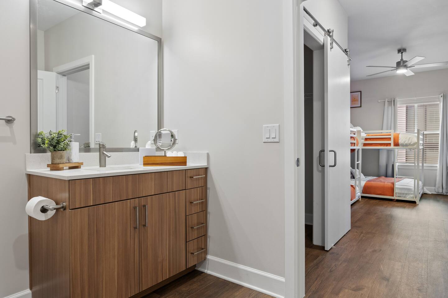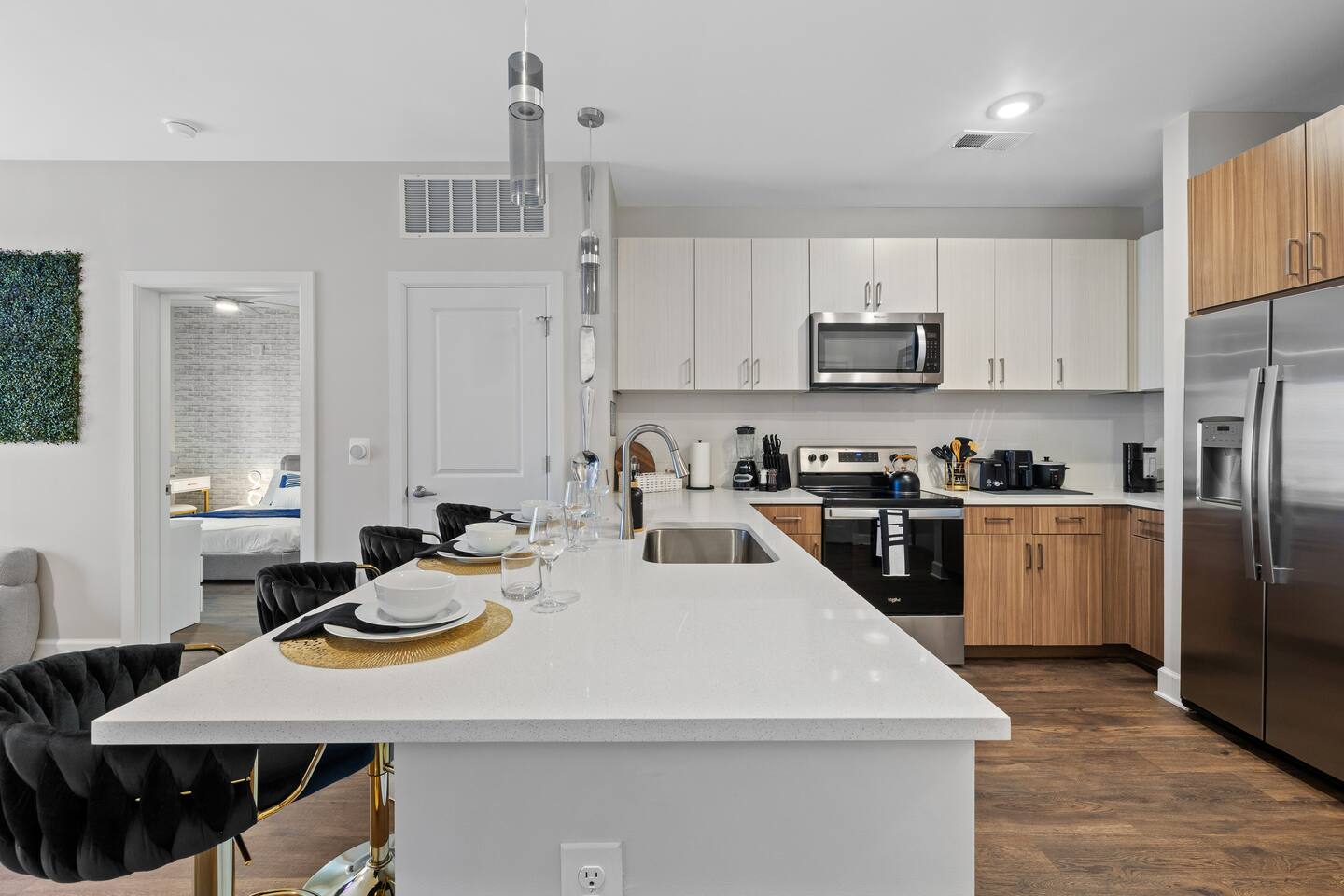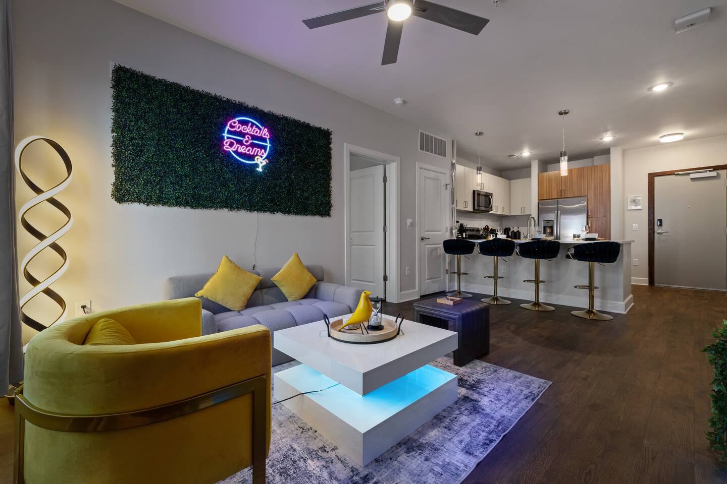 THE SPACE: This bright and modern 2-bedroom, 2-bathroom apartment is designed with vibrant pops of color and playful energy—perfect for groups and families who want comfort, convenience, and personality in the heart of Nashville. 🛏️ Sleeping Arrangements: 1 Full Bed (Primary Bedroom) 1 Bunk Bed with Full over Full 1 Bunk Bed with Twin over Twin 🍳 Fully stocked kitchen with stainless steel appliances 🛋️ Cozy and colorful living room for movie nights and hangouts 🛁 Two full bathrooms with modern finishes THE BUILDING: Set in a secure luxury complex, you’ll enjoy elevated amenities for a relaxing and fun-filled stay: 🏊 Infinity-edge pool with skyline views – the perfect chill zone 🌇 Rooftop lounge with seating and unbeatable sunset views 💪 Fitness center for an energizing workout 🚗 Parking available in the garage for $35/night THE LOCATION: Situated on buzzing Division Street, this location offers unbeatable access to Nashville’s best spots: 🎸 Broadway – Just a 10–12 minute walk to honky-tonks and live music 🍹 The Gulch – High-end dining, shopping & rooftop bars nearby 🏟 Bridgestone Arena & Nissan Stadium – For concerts, games, and events 🎤 Music Row & The Ryman – Immerse yourself in Nashville’s legendary music scene Whether you’re here to explore the sights, dance the night away, or unwind in a vibrant and stylish home base, this apartment has everything you need to enjoy the best of Music City. Permit #2025047007