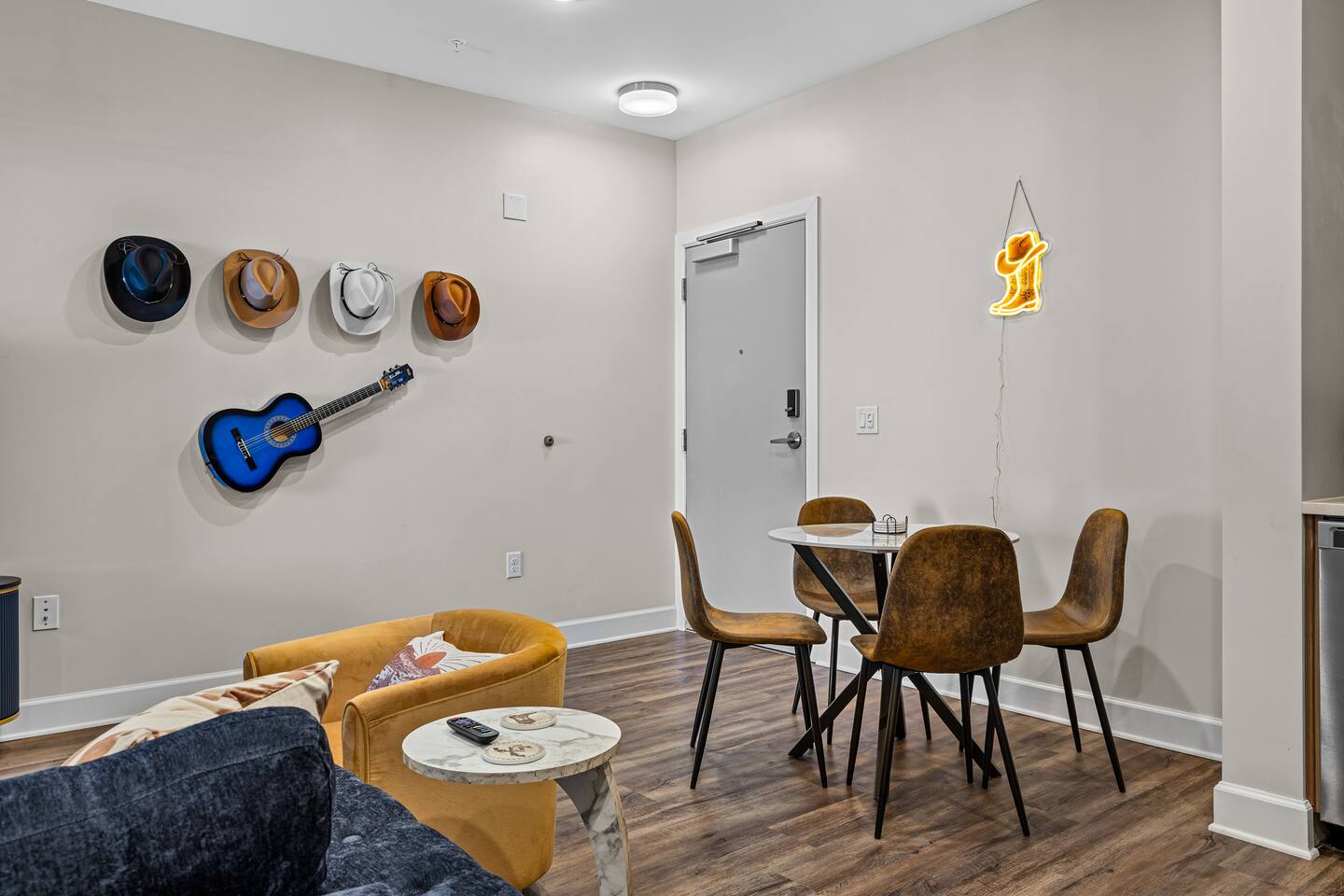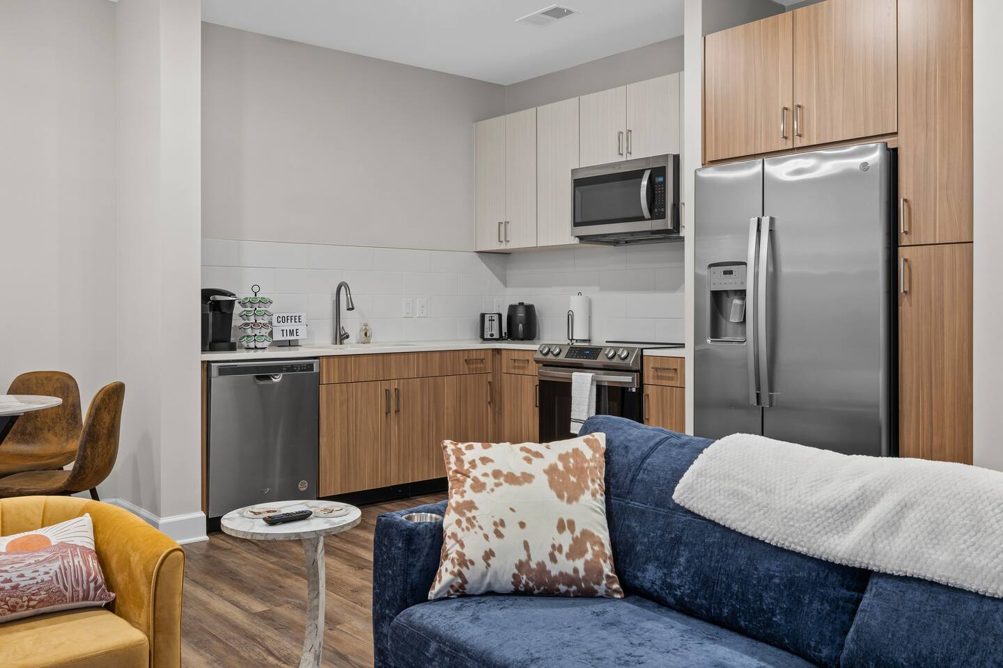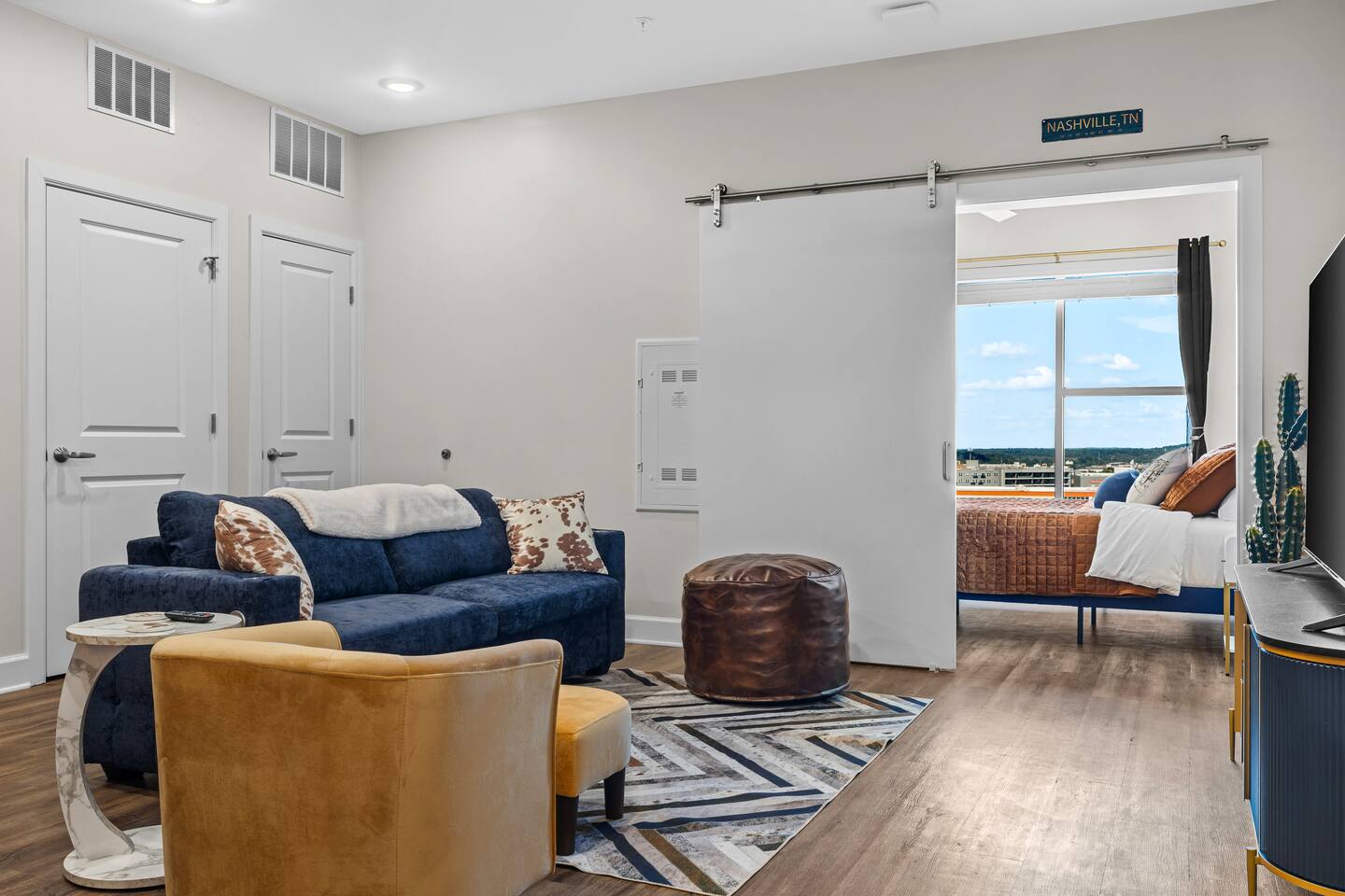 Welcome to your cozy Nashville retreat! This thoughtfully designed 1-bedroom, 1-bathroom apartment blends rustic charm with modern comfort in a country chic theme that perfectly captures the spirit of Music City. Located in one of the city’s most vibrant, walkable neighborhoods, you’re just steps from restaurants, bars, live music, and iconic attractions. 🛏 The Space This warm and welcoming space includes: A private bedroom with a plush queen bed and charming country-inspired decor A queen-size sofa sleeper in the living area, perfect for extra guests A full bathroom with fresh towels, toiletries, and great lighting A comfy living room with Smart TV and stylish seating—great for relaxing after a night out A fully equipped kitchen with modern appliances and everything you need to cook at home High-speed Wi-Fi to stay connected Washer & dryer in-unit for your convenience Self check-in for a smooth arrival 🏢 Building Amenities As a guest, you'll also have access to: A rooftop pool with skyline views (perfect for sunset lounging) A modern fitness center A secure building with elevator access A resident lounge ideal for working remotely or relaxing 🚗 Parking available for $35/night (limited availability—please inquire in advance) 📍 Explore on Foot Located on Division Street in The Gulch, you’ll be walking distance to the best of Nashville: 🎸 Broadway honky-tonks – 15-minute walk to Tootsie’s, The Stage & more 🍴 Gulch restaurants & bars – 5-10 minutes to Biscuit Love, Virago, LA Jackson 🏟 Bridgestone Arena – 10 minutes for concerts & Predators games 🎭 Ryman Auditorium – 15-minute stroll 🏈 Nissan Stadium – 25-minute walk across the pedestrian bridge ☕ Coffee shops – Barista Parlor, Killebrew, and Frothy Monkey are all nearby 🌾 A Relaxed Nashville Escape Whether you're visiting for live music, southern cooking, or a weekend getaway, this country-chic apartment is the perfect home base. The design is warm and inviting—ideal for couples, solo travelers, or small groups looking for comfort, style, and a walkable location. 📅 Availability fills quickly—book now and start your Nashville adventure!