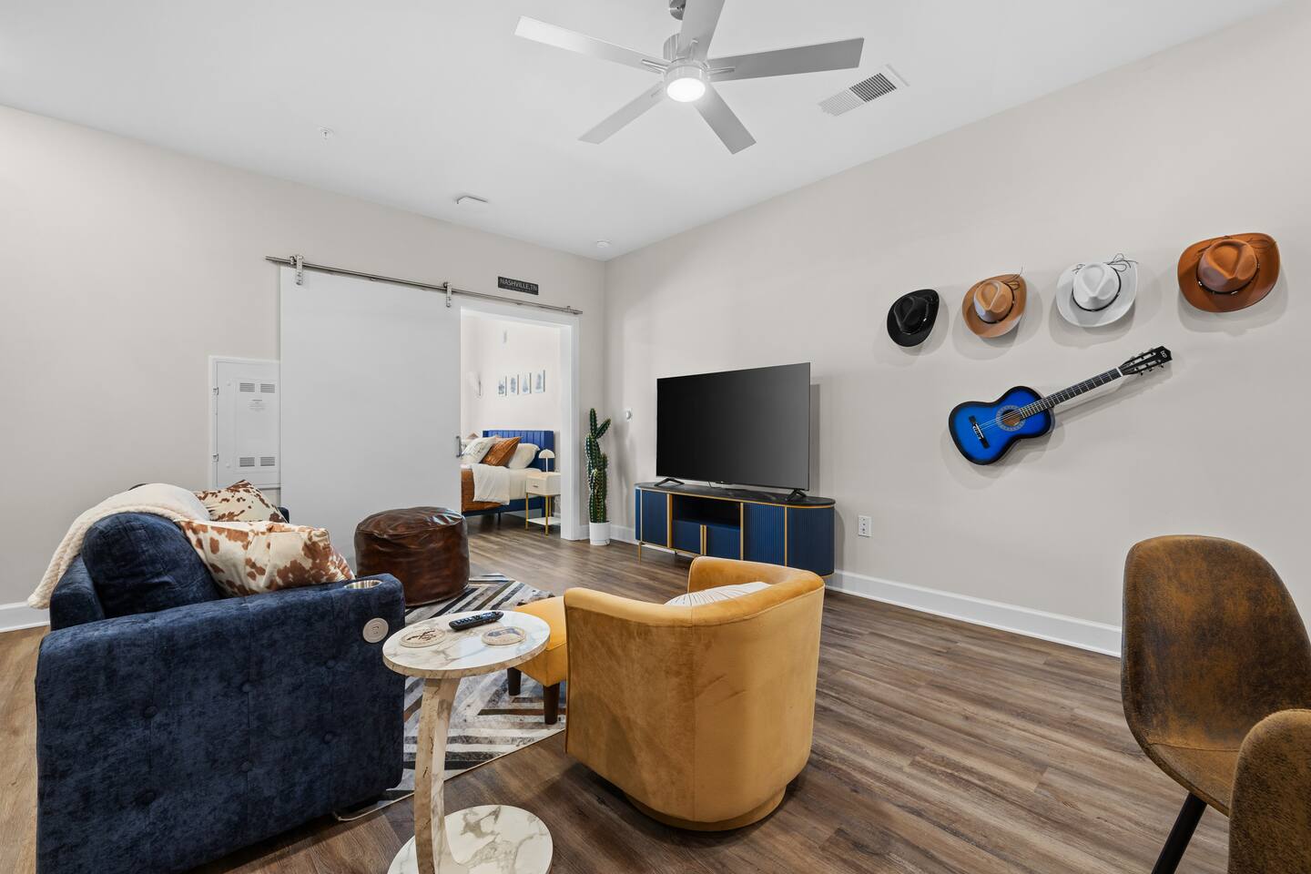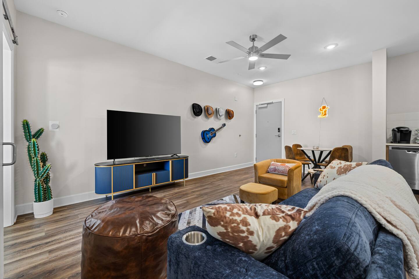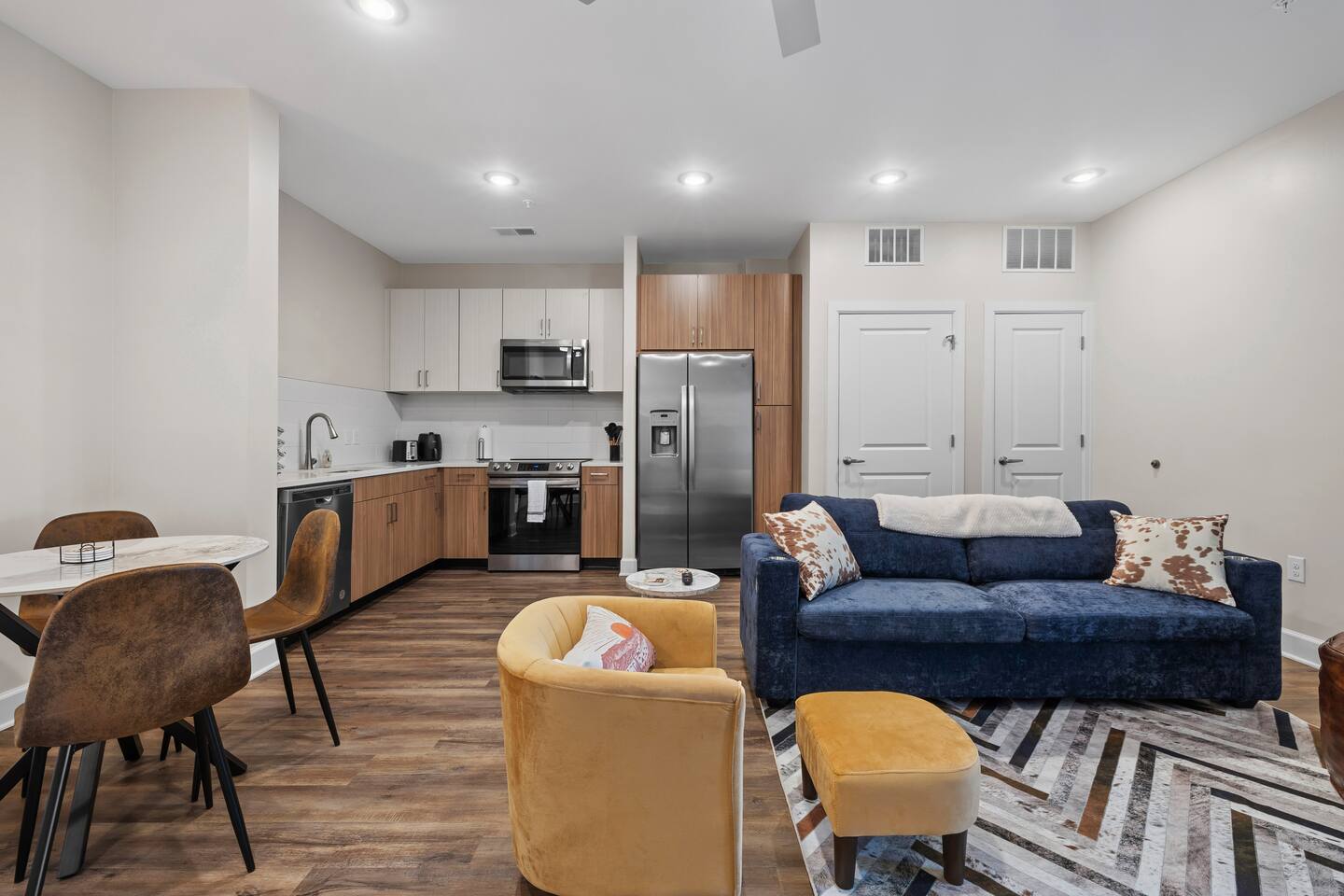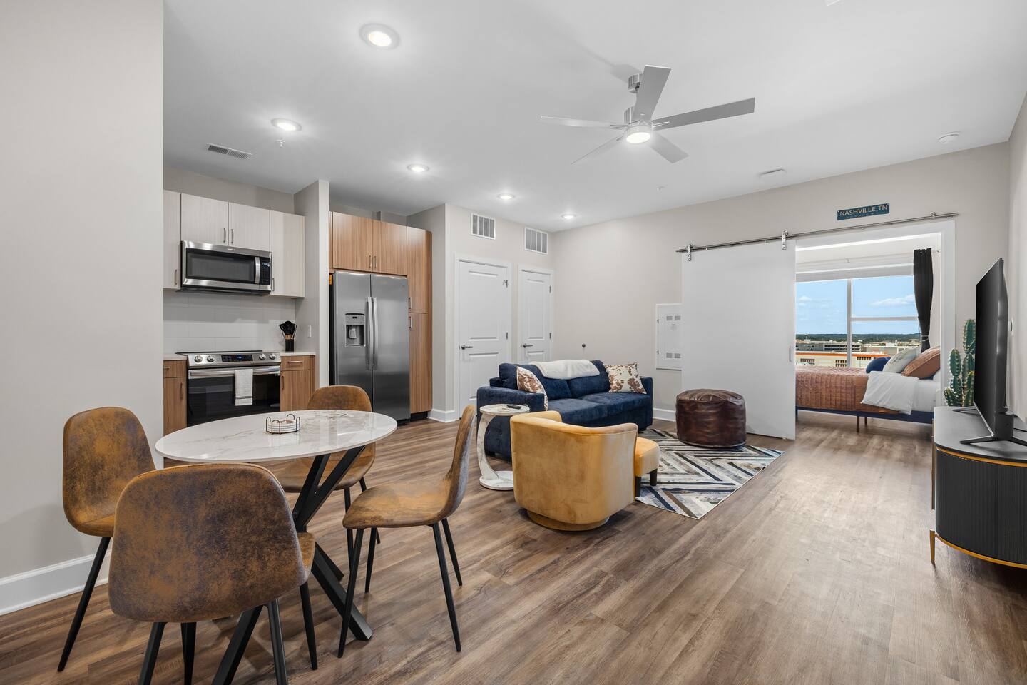 Welcome to your cozy Nashville retreat! This thoughtfully designed 1-bedroom, 1-bathroom apartment blends rustic charm with modern comfort in a country chic theme that perfectly captures the spirit of Music City. Located in one of the city’s most vibrant, walkable neighborhoods, you’re just steps from restaurants, bars, live music, and iconic attractions. 🛏 The Space This warm and welcoming space includes: A private bedroom with a plush queen bed and charming country-inspired decor A queen-size sofa sleeper in the living area, perfect for extra guests A full bathroom with fresh towels, toiletries, and great lighting A comfy living room with Smart TV and stylish seating—great for relaxing after a night out A fully equipped kitchen with modern appliances and everything you need to cook at home High-speed Wi-Fi to stay connected Washer & dryer in-unit for your convenience Self check-in for a smooth arrival 🏢 Building Amenities As a guest, you'll also have access to: A rooftop pool with skyline views (perfect for sunset lounging) A modern fitness center A secure building with elevator access A resident lounge ideal for working remotely or relaxing 🚗 Parking available for $35/night (limited availability—please inquire in advance) 📍 Explore on Foot Located on Division Street in The Gulch, you’ll be walking distance to the best of Nashville: 🎸 Broadway honky-tonks – 15-minute walk to Tootsie’s, The Stage & more 🍴 Gulch restaurants & bars – 5-10 minutes to Biscuit Love, Virago, LA Jackson 🏟 Bridgestone Arena – 10 minutes for concerts & Predators games 🎭 Ryman Auditorium – 15-minute stroll 🏈 Nissan Stadium – 25-minute walk across the pedestrian bridge ☕ Coffee shops – Barista Parlor, Killebrew, and Frothy Monkey are all nearby 🌾 A Relaxed Nashville Escape Whether you're visiting for live music, southern cooking, or a weekend getaway, this country-chic apartment is the perfect home base. The design is warm and inviting—ideal for couples, solo travelers, or small groups looking for comfort, style, and a walkable location. 📅 Availability fills quickly—book now and start your Nashville adventure!